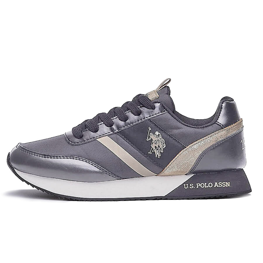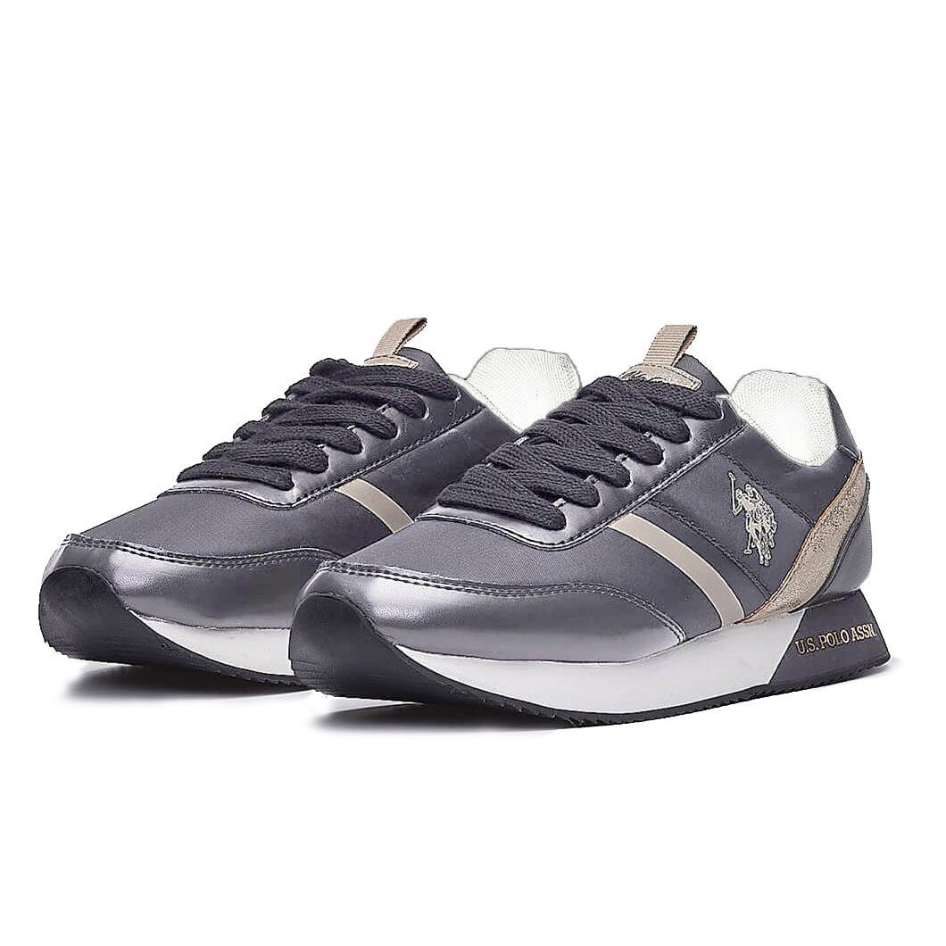 U.S. Polo Assn. grey sneakers with light grey and silver inserts, 100% eco fabric, rubber sole, eco leather details.