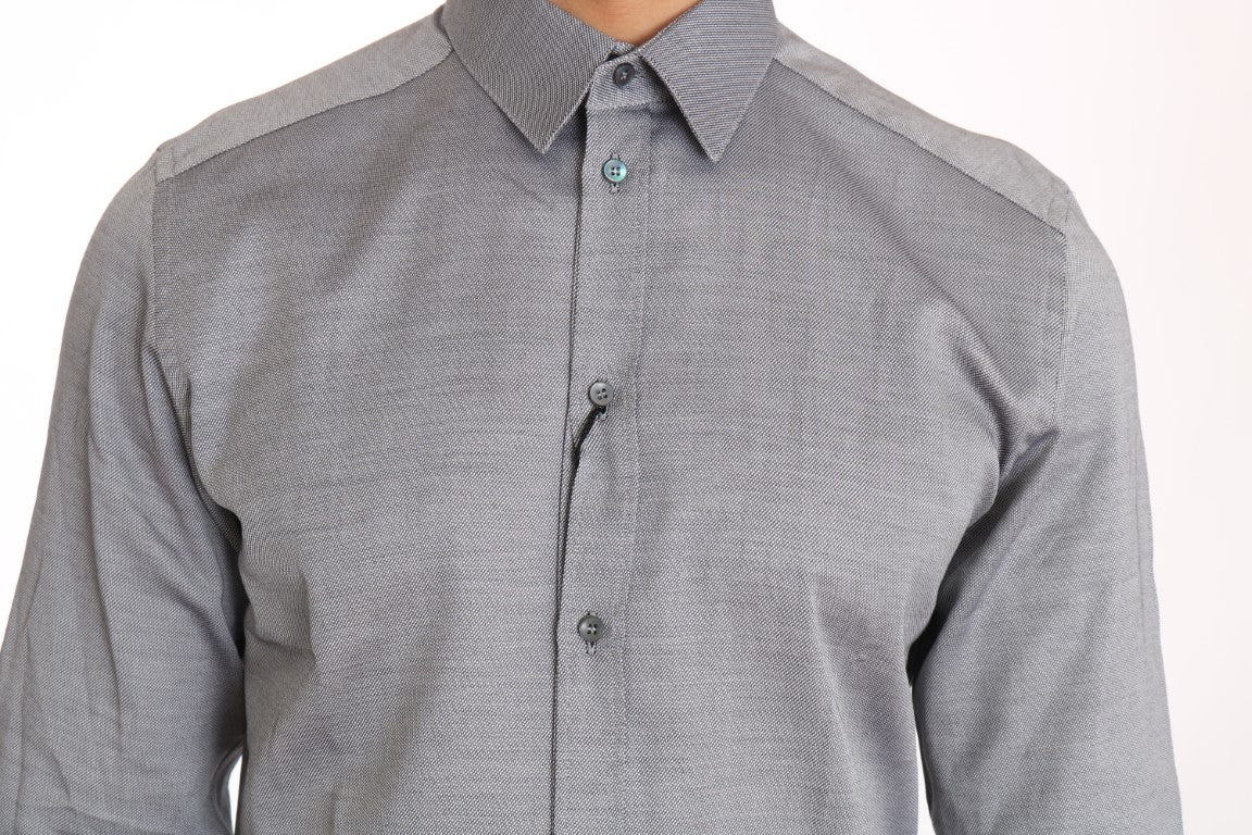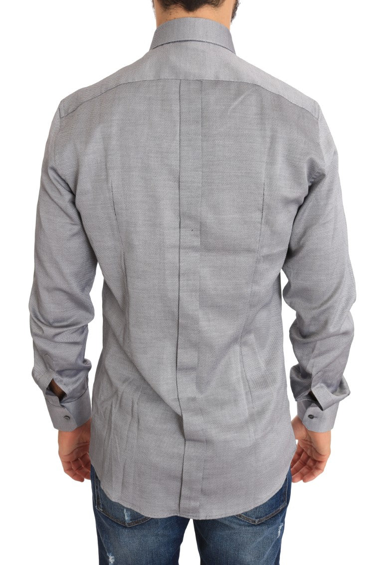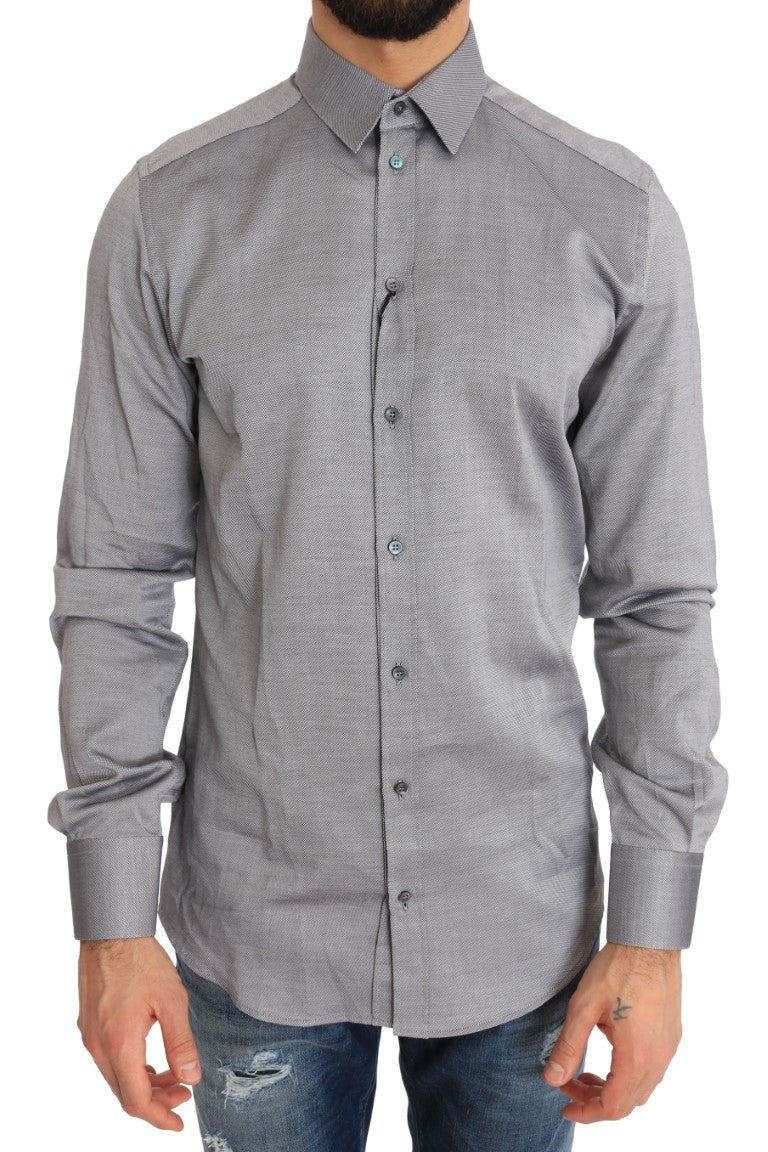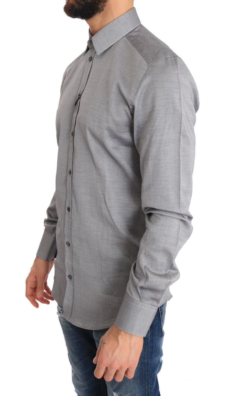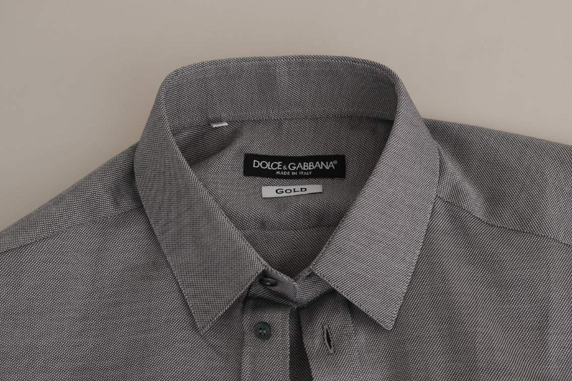 Experience the epitome of Italian elegance with this Dolce & Gabbana dress shirt, a perfect blend of luxury and style for the modern gentleman. This slim fit shirt features exquisite craftsmanship and a timeless gray patterned design, ready to enhance any formal ensemble. Crafted from the finest 100% cotton, it ensures both comfort and durability. Complete with logo details and a classic front button closure, it’s an authentic piece that reflects your penchant for high fashion and quality.
