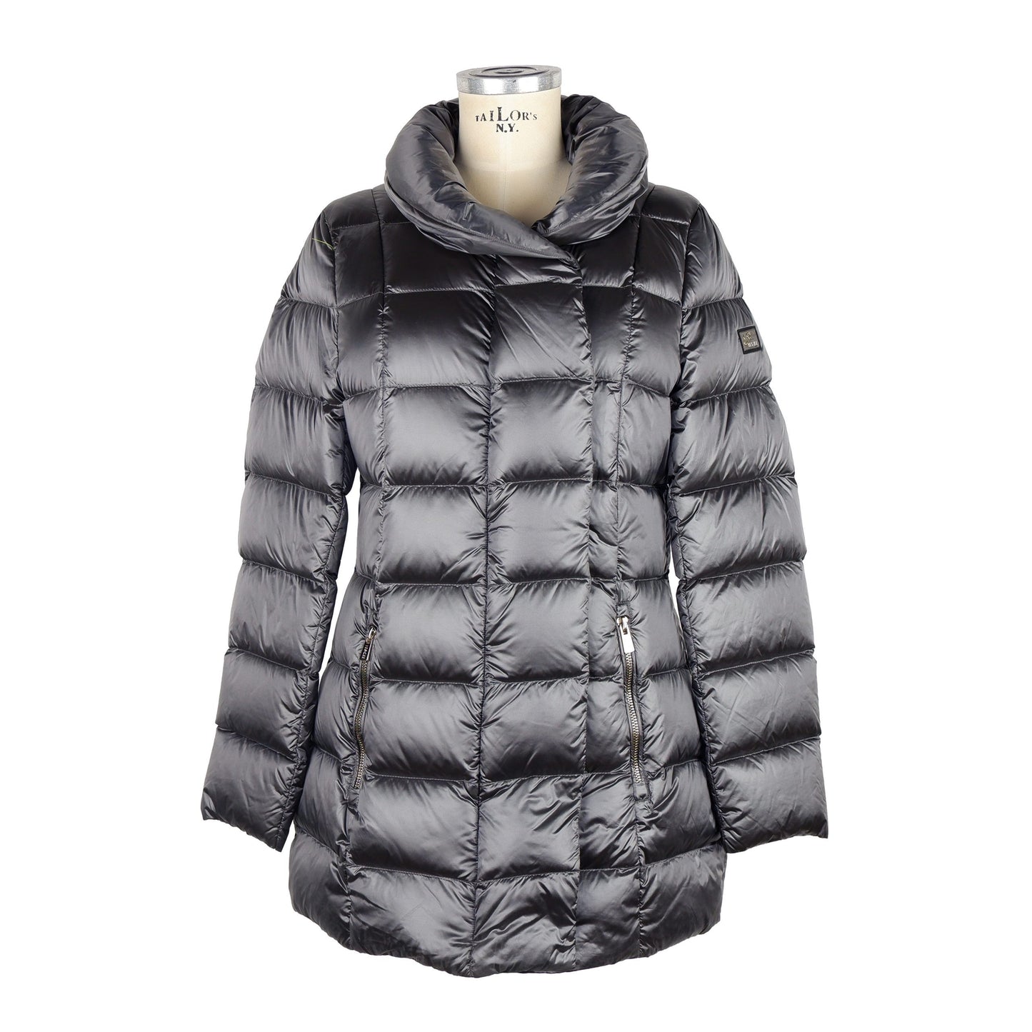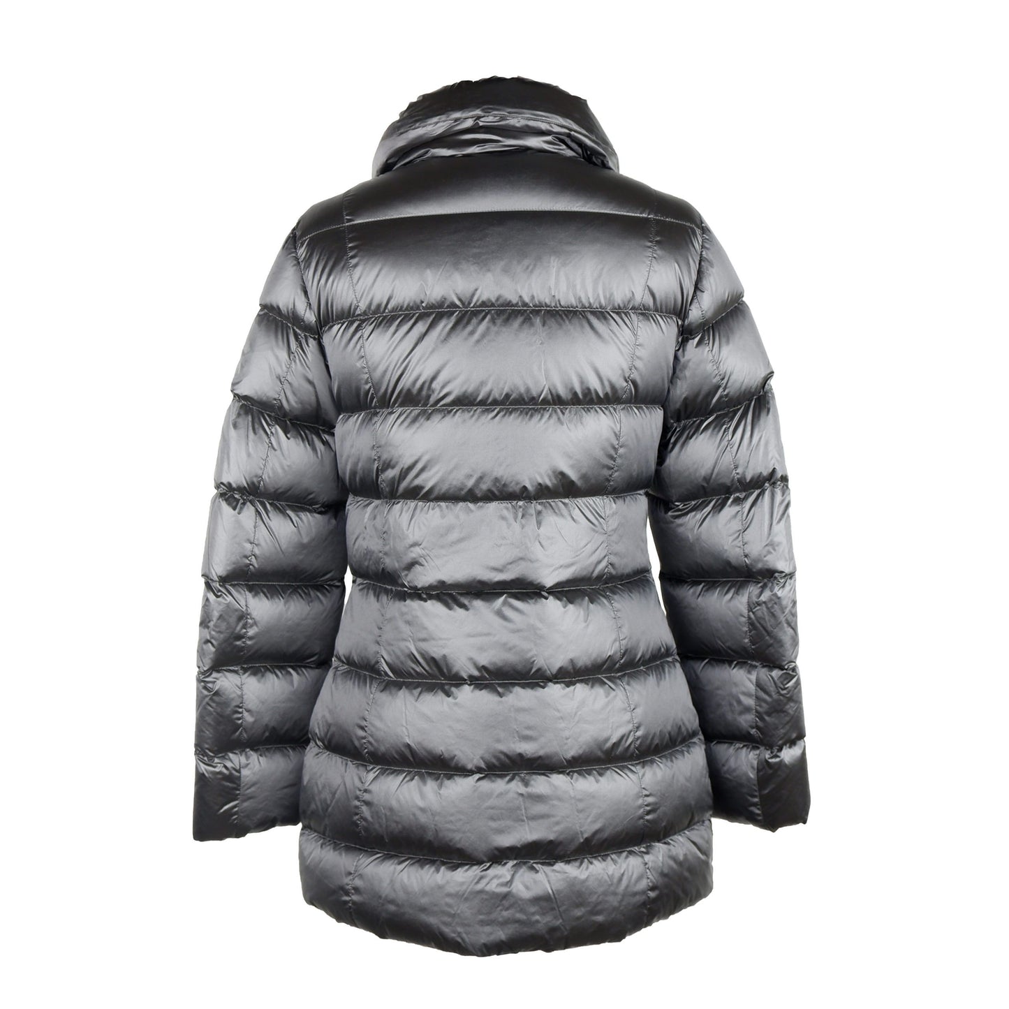 Experience warmth and style with our sophisticated women’s down jacket. Crafted from 100% polyamide for a lightweight yet durable feel, this jacket features premium real down padding to keep you cozy in cooler weather. With a practical design that includes a secure zip and button closure, as well as two side pockets, functionality goes hand in hand with fashion. The chic high collar not only adds an elegant touch but also provides extra protection against the elements.