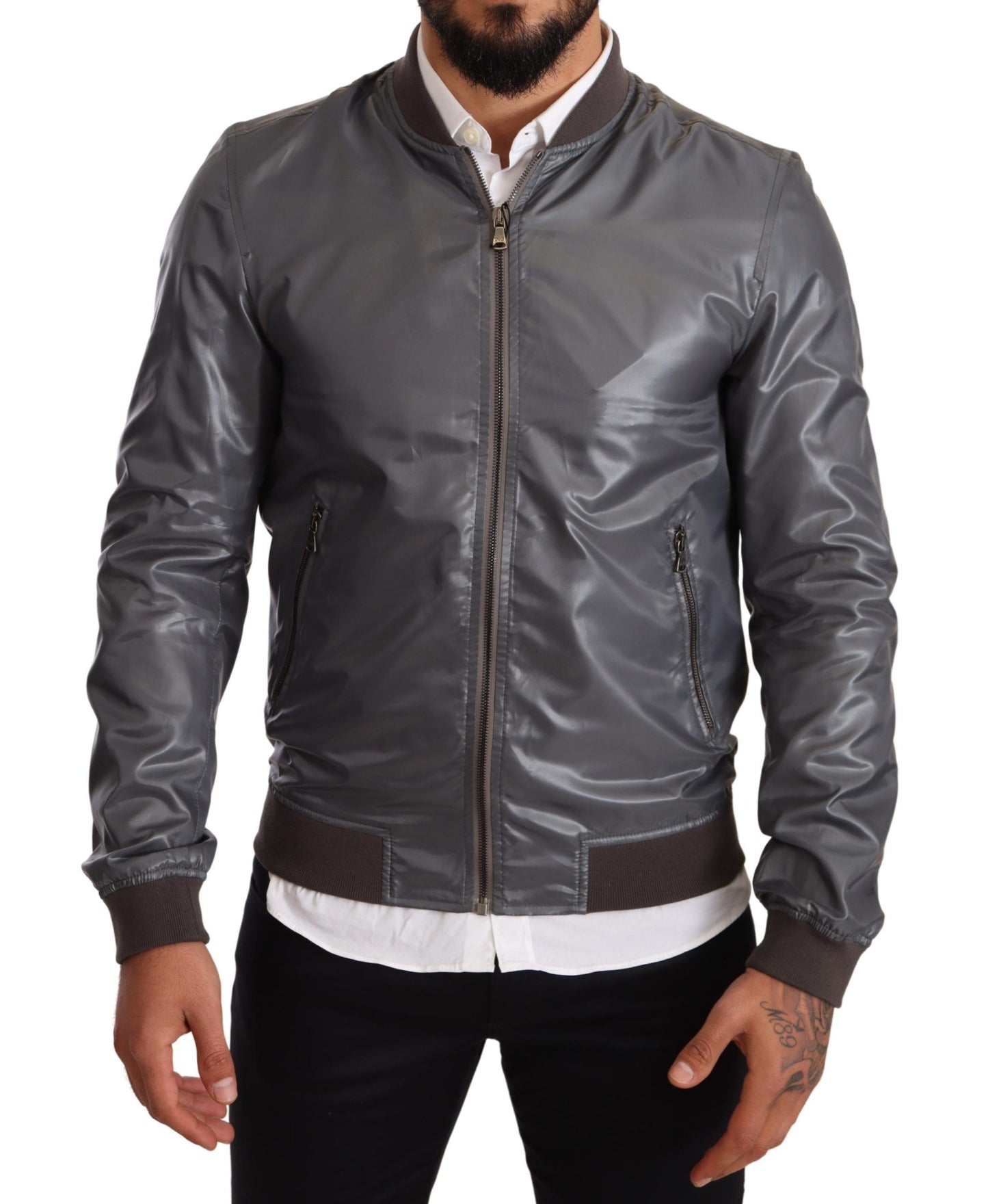 Step out in style with this stunning, 100% authentic bomber jacket from none other than the esteemed Dolce & Gabbana. A true epitome of luxury, this new-with-tags jacket boasts a sleek gray hue, complemented by a comforting full zip front fastening and ribbed edges for a perfect fit. Discover Italian craftsmanship at its finest, and make a distinctive fashion statement.