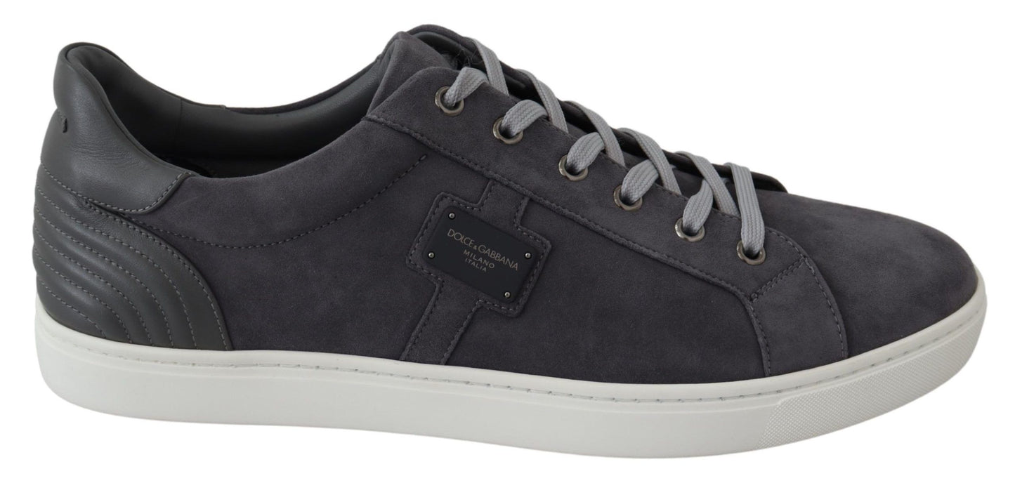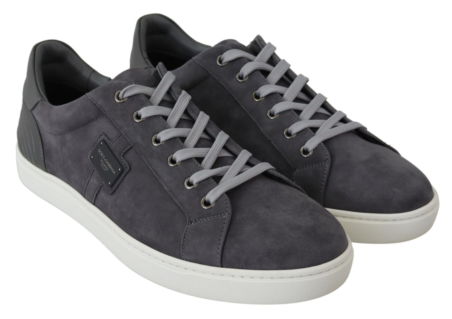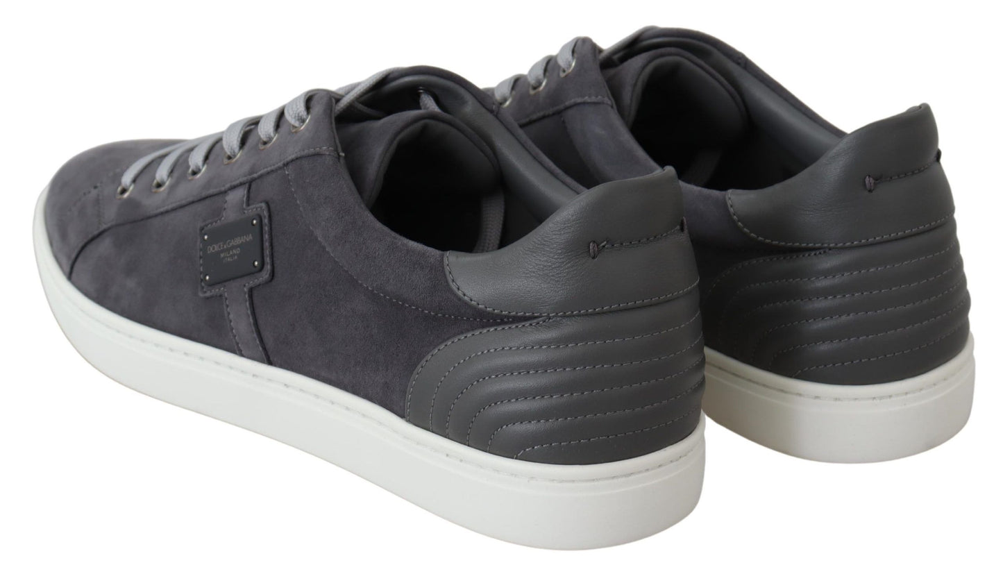 Step in style with these exquisite Dolce & Gabbana men’s sneakers. Crafted from high-quality leather and suede, these gray casual sneakers perfectly blend sophistication with a modern edge. With their luxurious feel and high craftsmanship standards, these Italian-made shoes feature distinct logo details and a durable rubber sole, ensuring both comfort and elegance.