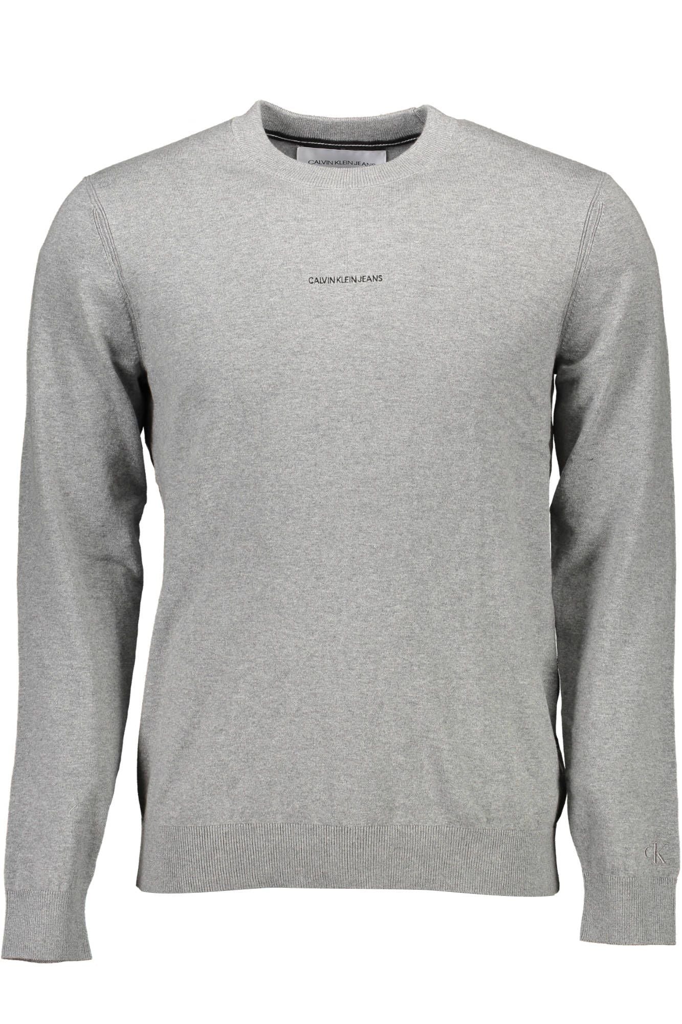 Envelop yourself in the understated elegance of this sleek gray, long-sleeved sweater, featuring exquisite embroidery and the subtle emblem of luxury known as the Calvin Klein logo. Crafted with care, this essential piece brings both comfort and style to your wardrobe, transcending trends with its timeless appeal.