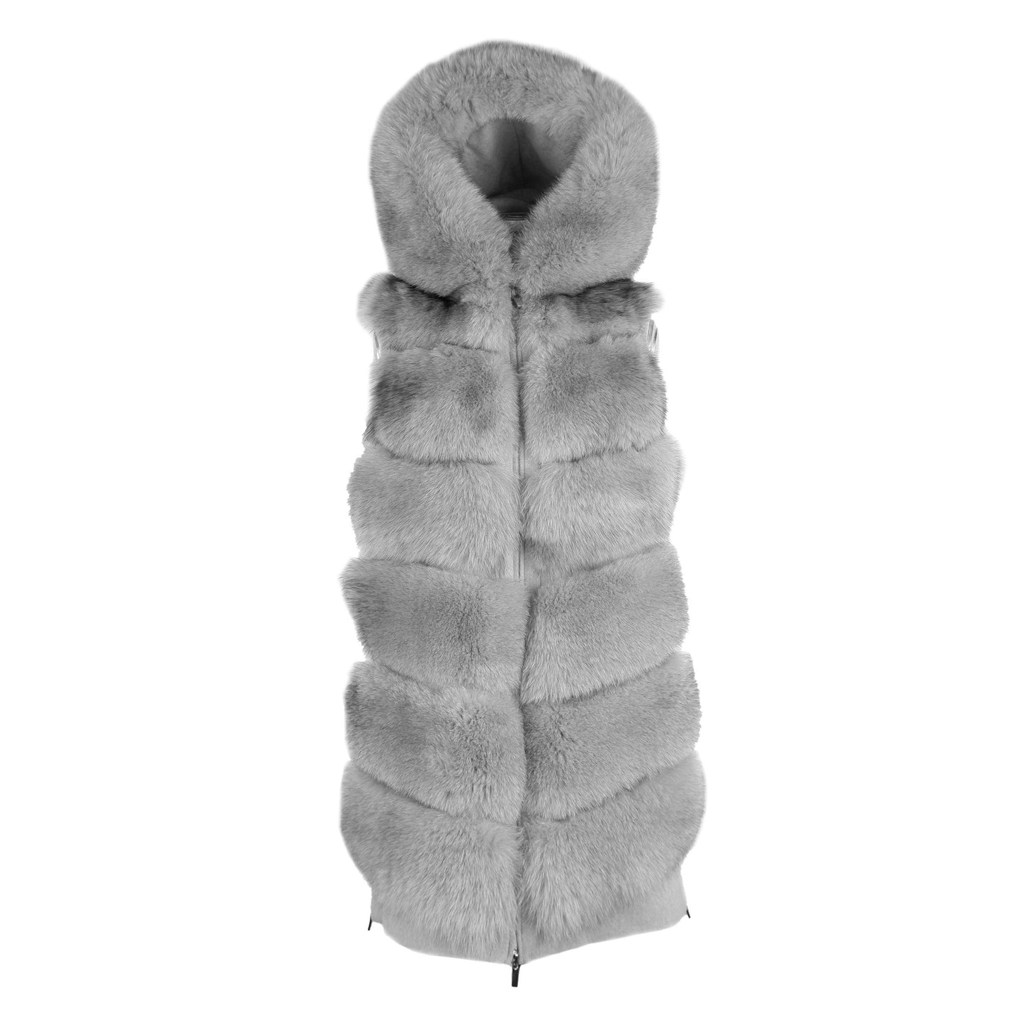 Discover the opulence of this exquisite sleeveless wool coat by Made in Italy, a testament to timeless luxury and unparalleled craftsmanship. The 2023 Loro Piana Tessuto design features a sumptuous fox fur-lined front, bringing a touch of elegance and warmth. Designed for both sophistication and practicality, it includes a convenient zip closure, chic side opening zips, and a fur-adorned hood for that extra flair of luxury.