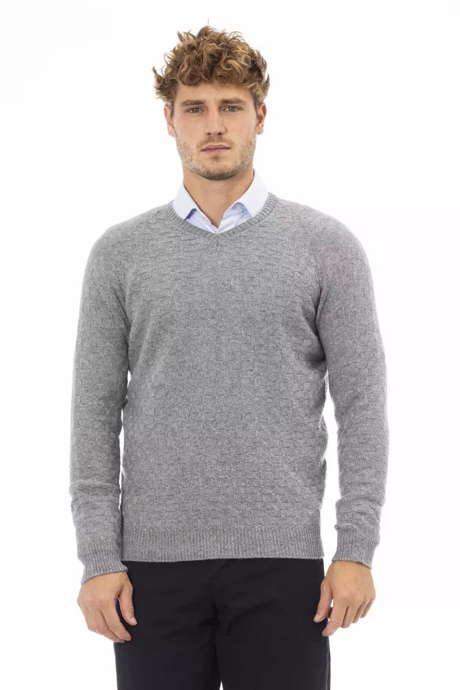 Chic Gray V-Neck Cashmere-Blend Sweater