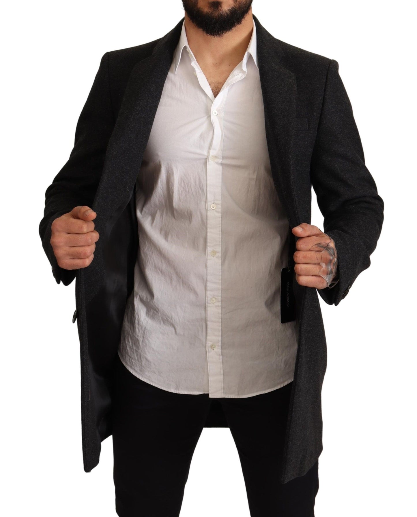 Step out in sophisticated style with this absolutely stunning single-breasted trenchcoat from Dolce & Gabbana. Tailored to perfection with luxurious virgin wool, this coat is a standout piece for any discerning gentleman’s wardrobe. Its classic gray color ensures versatility, while the sleek logo details provide a touch of designer flair. Crafted with care in Italy, this coat is a testament to timeless fashion and impeccable craftsmanship.