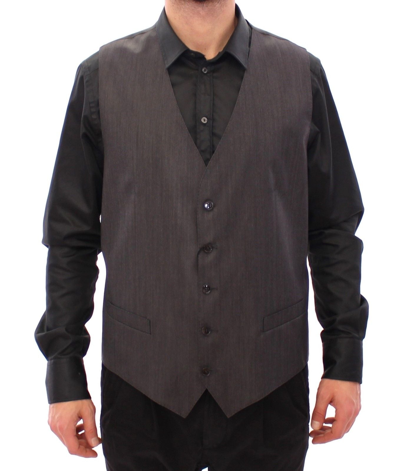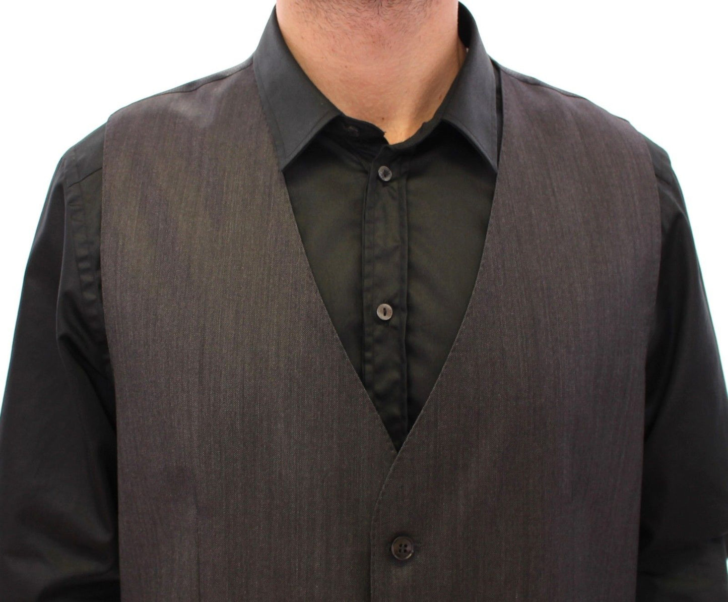 Elegant Gray Wool Silk Blend Formal Vest