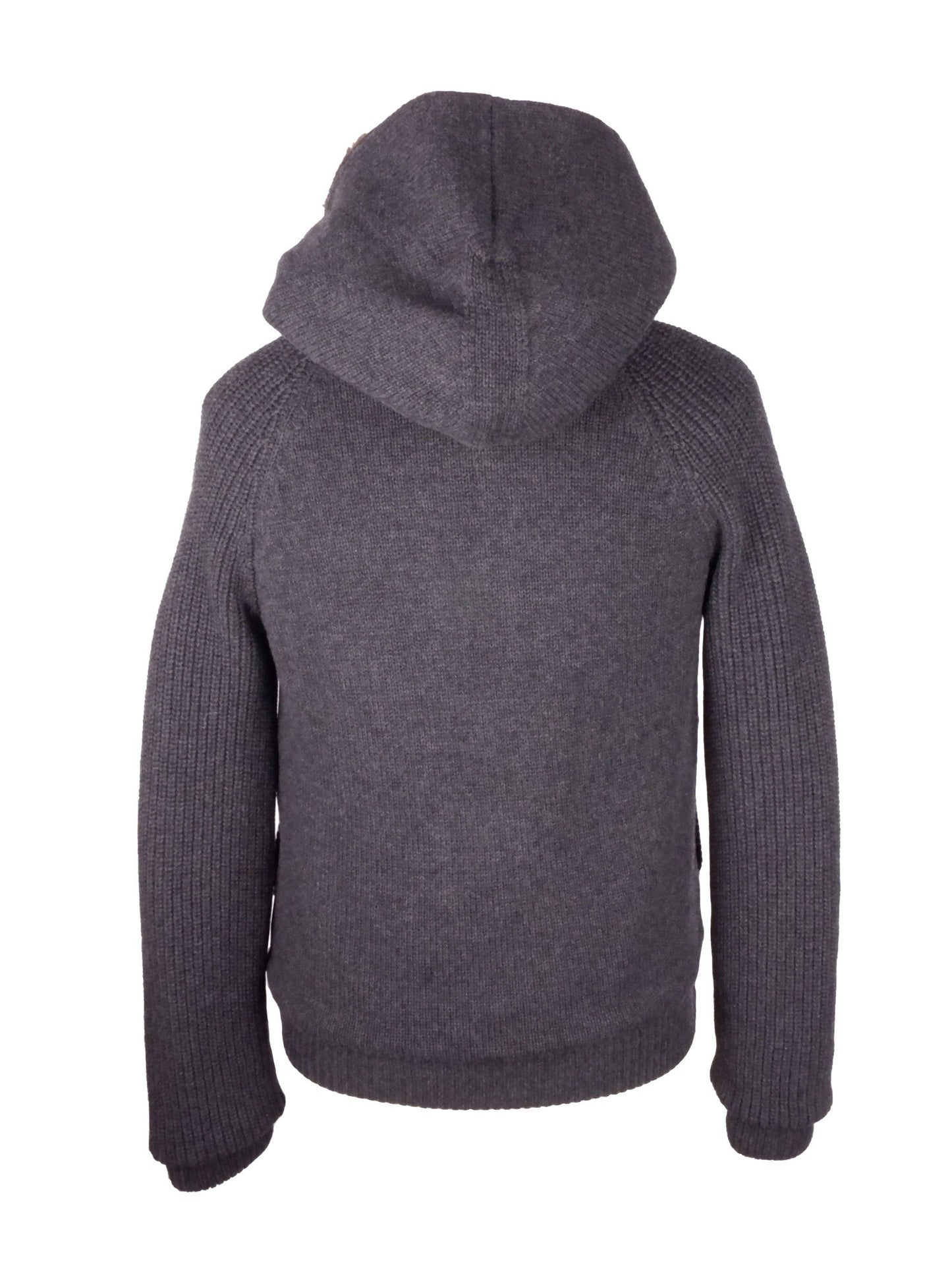 Elegant Grey Hooded Wool-Cashmere Jacket