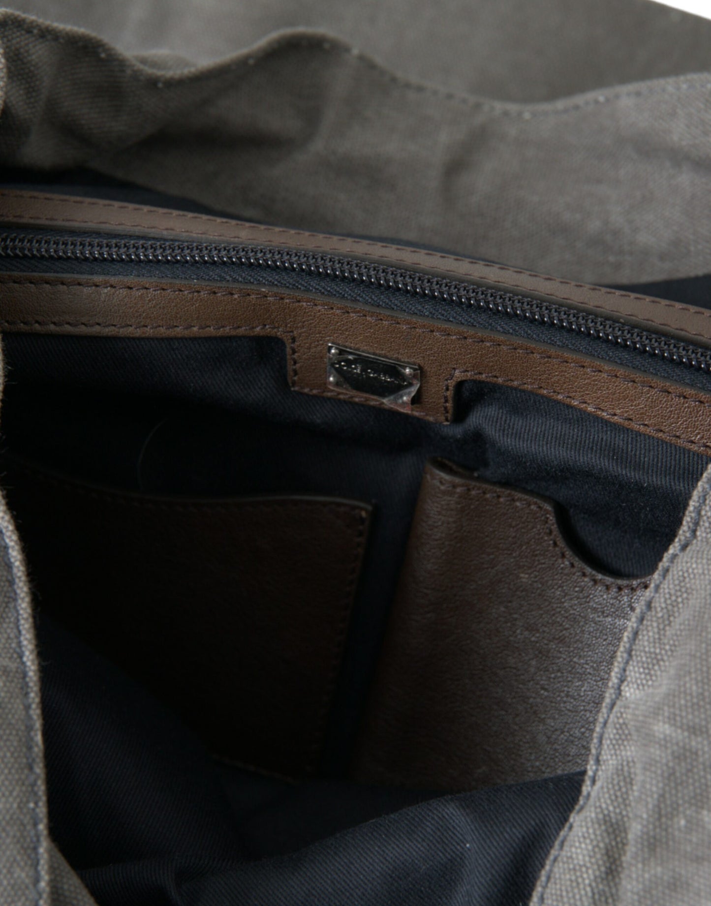 Green Brown Baroque Canvas Leather Rucksack Backpack Bag