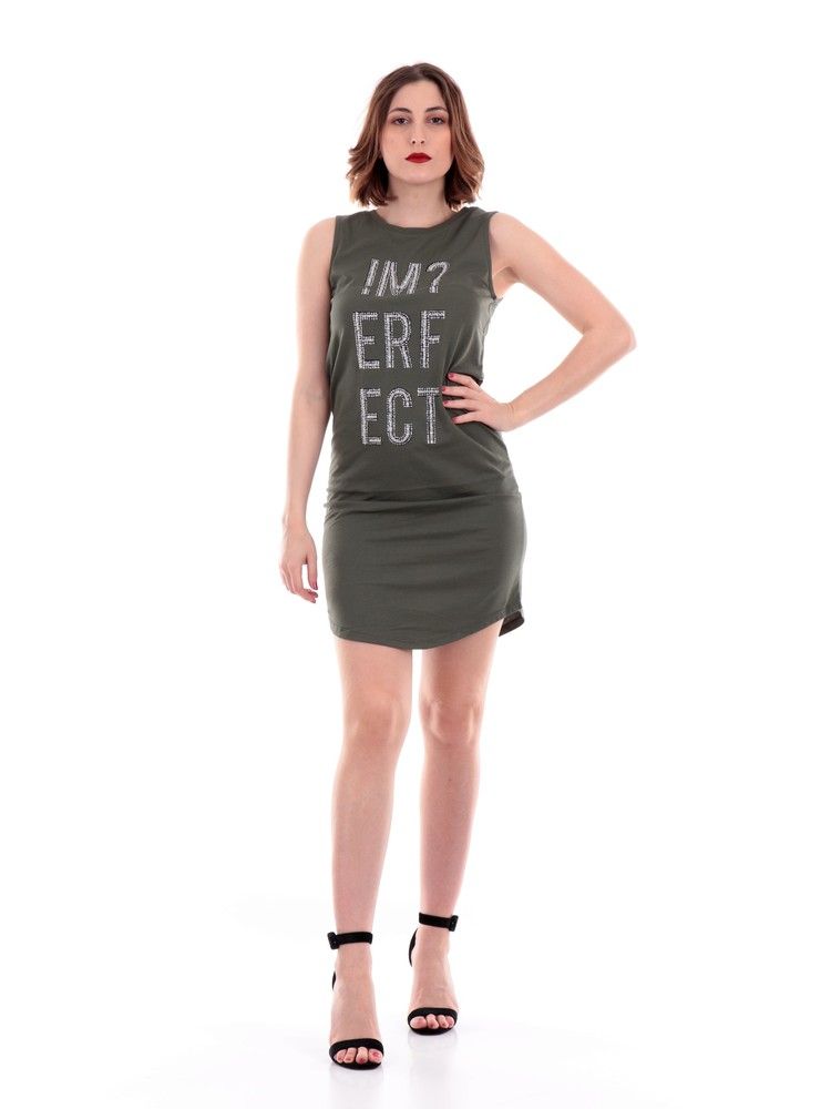 Step out in style with this ‘Imperfect’ army green maxi tank dress, perfect for showcasing your unique fashion sense. Adorned with a front logo, the dress shimmers with intricately placed rhinestones and beads, offering a touch of glamour. Crafted from a breathable cotton material, its silhouette boasts a slightly rounded bottom that blends effortlessly with various footwear – from casual sneakers to elegant heels. This statement piece is not just about style but also comfort and versatility.