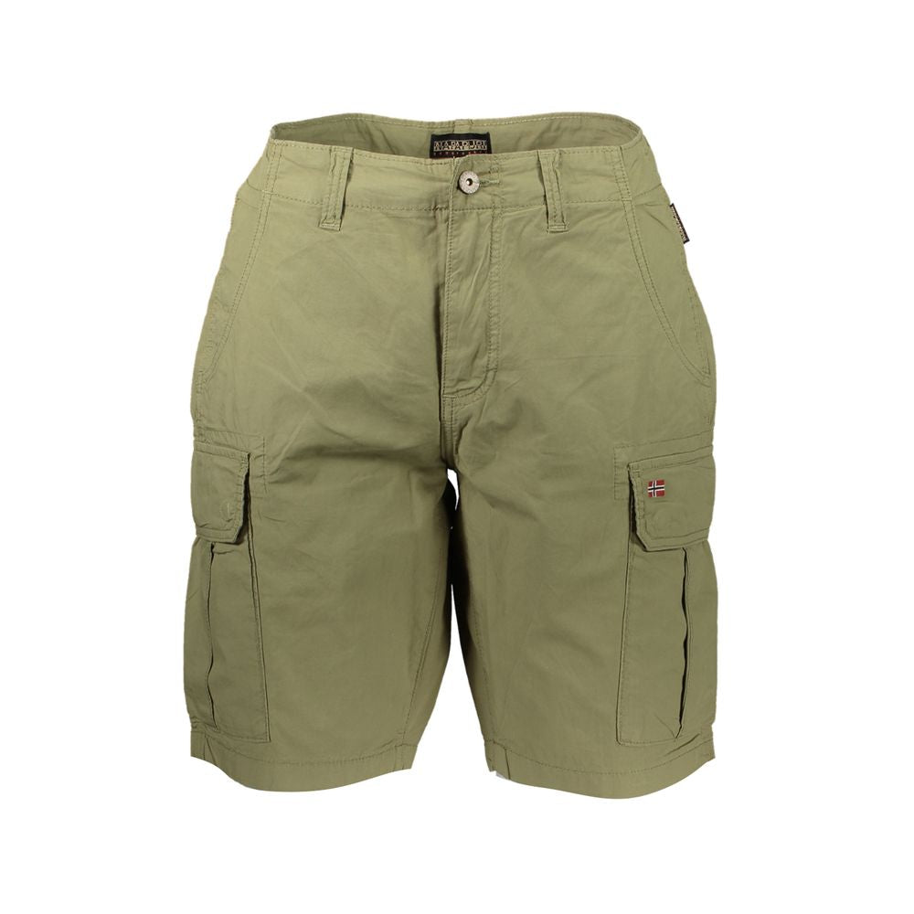 Embrace the essence of summer sophistication with these exquisite green Bermuda shorts, skillfully crafted from 100% cotton for unparalleled comfort and durability. These shorts are designed to add a touch of elegance to your casual wardrobe. The contrast details and eye-catching Napapijri embroidery elevate the classic silhouette, while the logo offers a subtle nod to the distinguished brand. Perfect for those who value both style and substance.