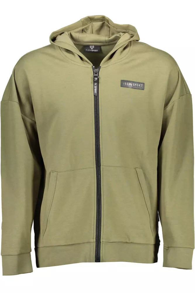 Indulge in the premium comfort and sleek design of this emerald green hooded sweatshirt from Plein Sport. Crafted with a harmonious blend of cotton and polyester, it features long sleeves, a practical zip closure, and two central pockets for functionality. It’s accentuated with contrasting details, bold applications, and the unmistakable Plein Sport print logo, adding a dash of luxury to your casual wardrobe.