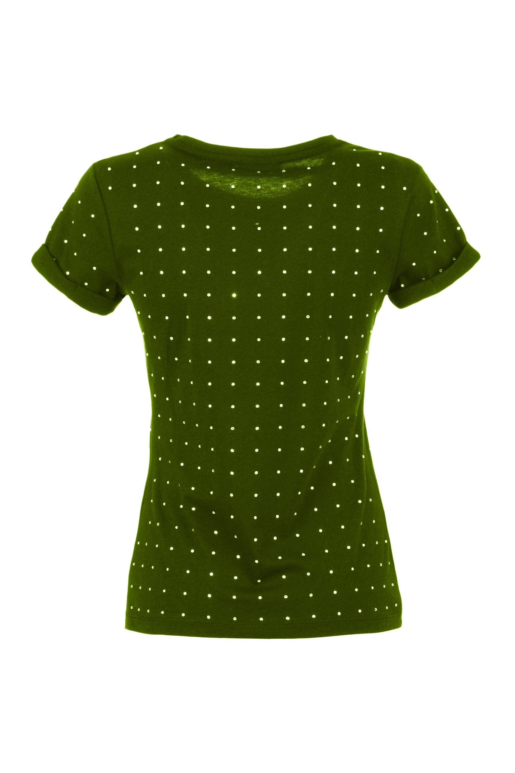Illuminate your casual wardrobe with this dazzling Army Green T-shirt from Imperfect, adorned with sparkling strass for that glam touch. Perfect for adding a little sparkle to your everyday look!