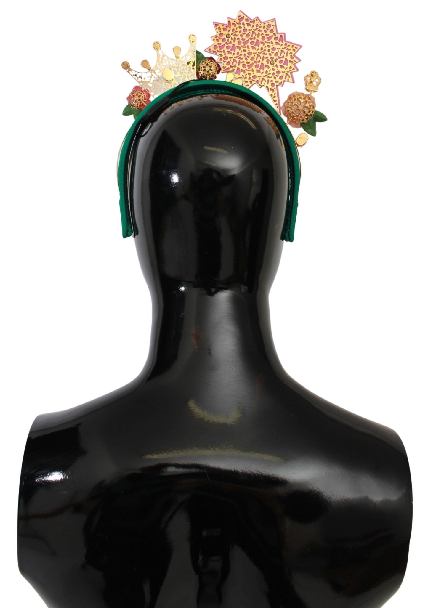 Indulge in the opulence of Dolce & Gabbana with this magnificent Green Diadem Headband, a piece that is sure to elevate any ensemble with a regal touch. Adorned with dazzling multicolor crystals and featuring gold detailing, it epitomizes sophistication and luxury. Crafted from the highest quality materials and boasting impeccable Italian craftsmanship, this headpiece is not just an accessory—it’s a statement of elegance and exclusivity.