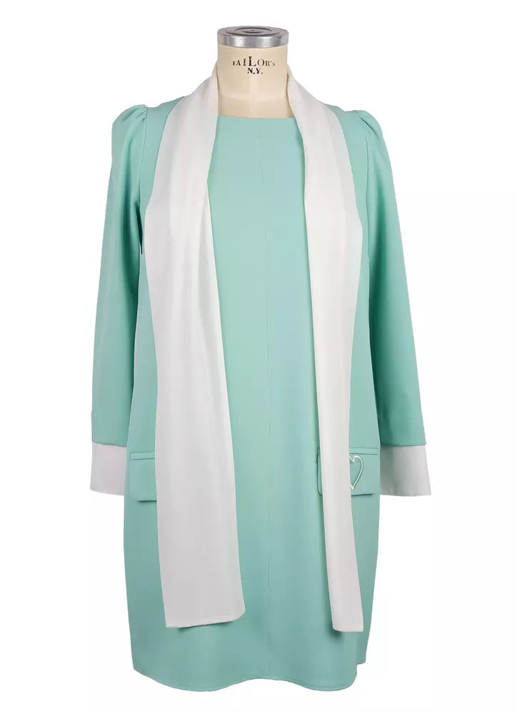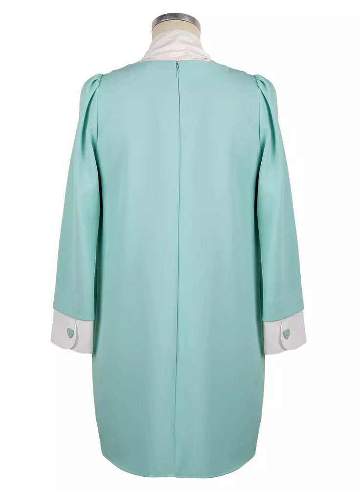 Indulge in the epitome of sophistication with this elegantly tailored dress, perfect for any occasion that calls for a touch of elegance. Designed with long sleeves and adorned with unique heart-shaped buttons on the cuffs, this dress boasts two front pockets embellished with tulle heart decorations, showcasing a blend of style and functionality. The convenient back zipper closure ensures a smooth silhouette, complementing the exquisite Italian craftsmanship that defines this garment.