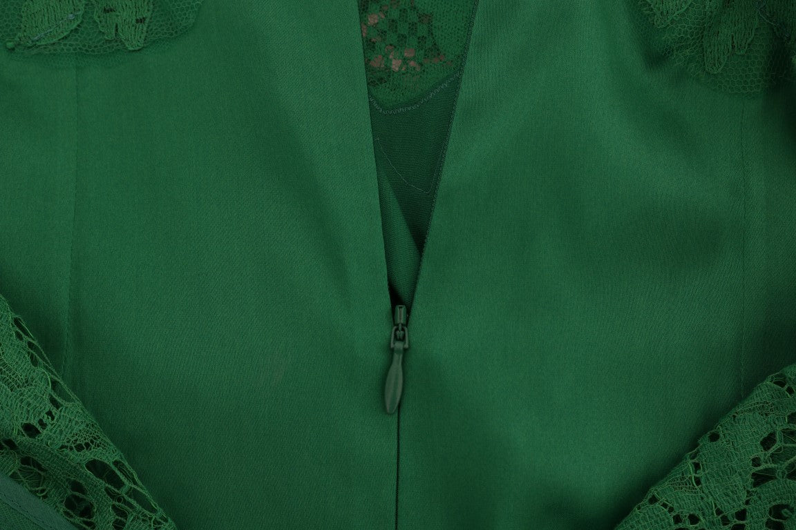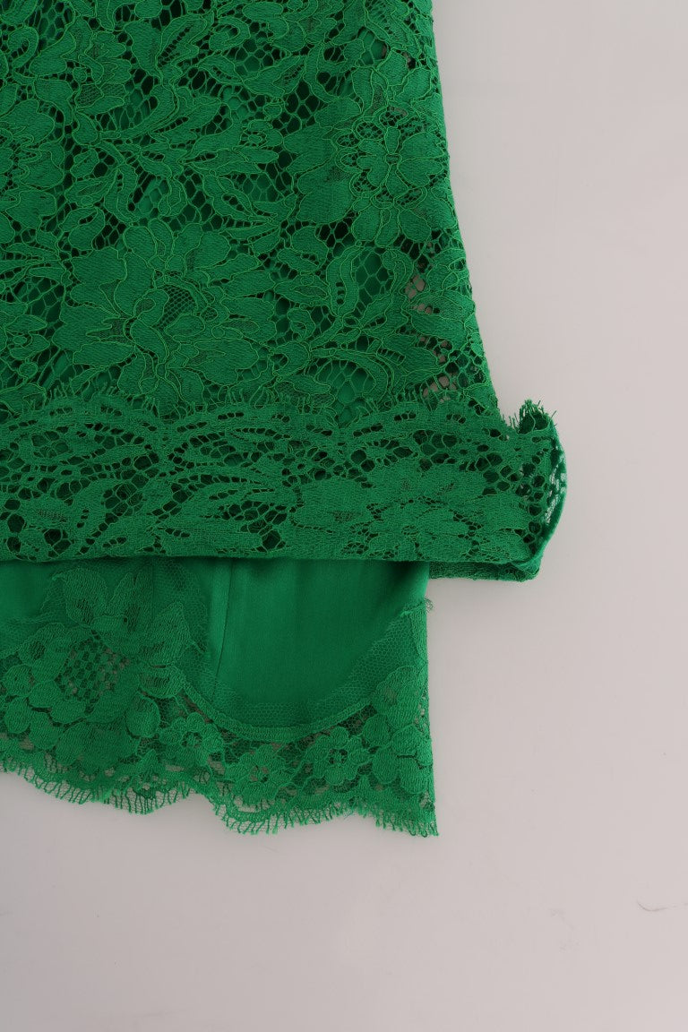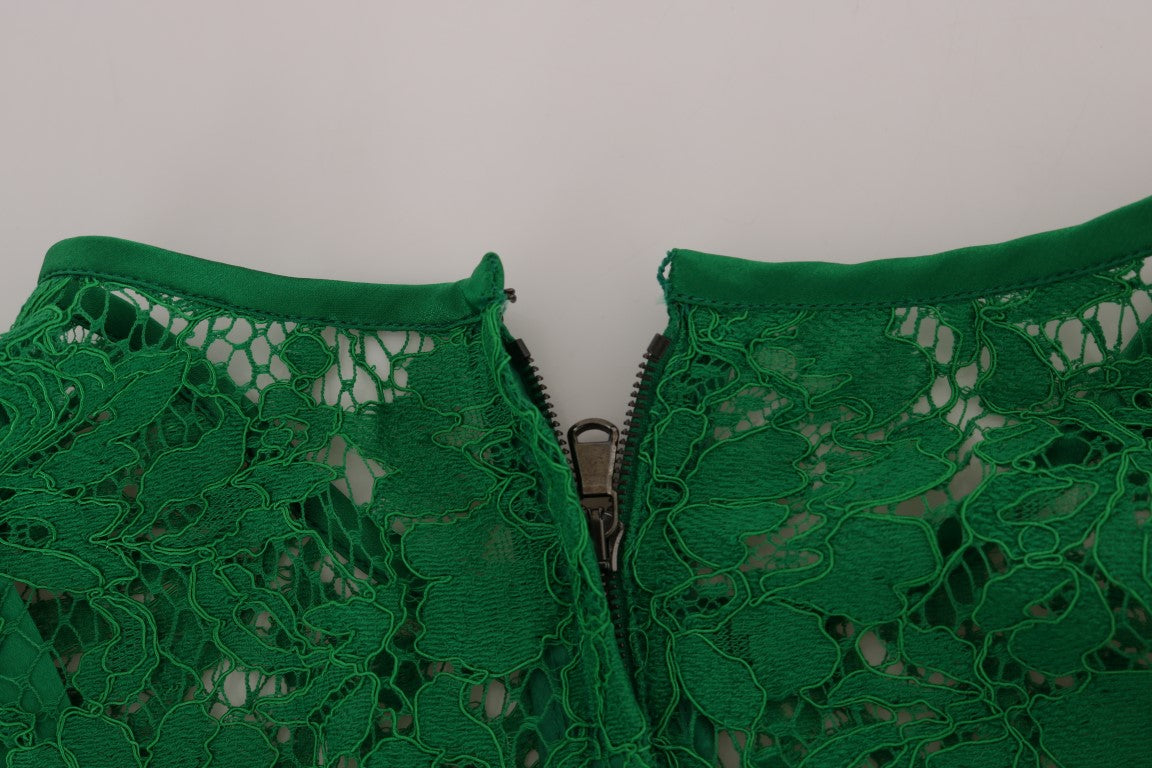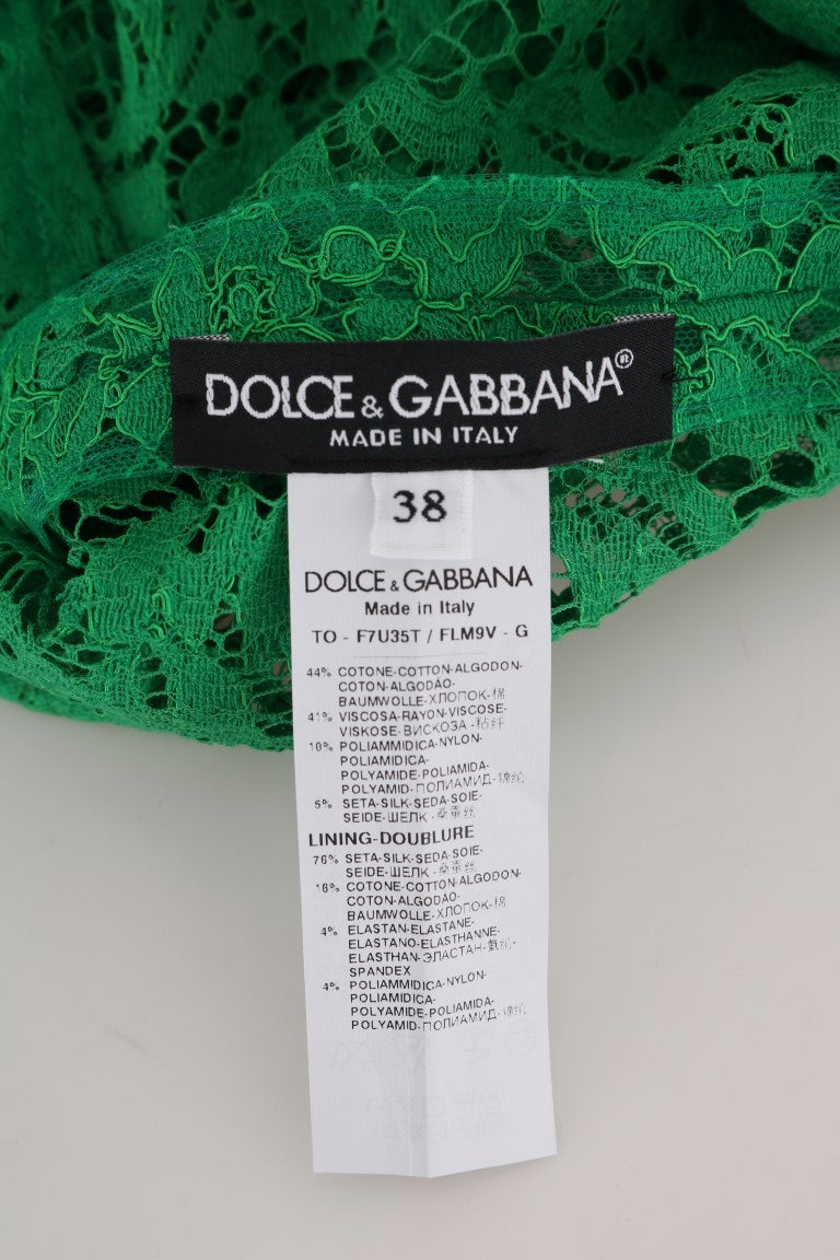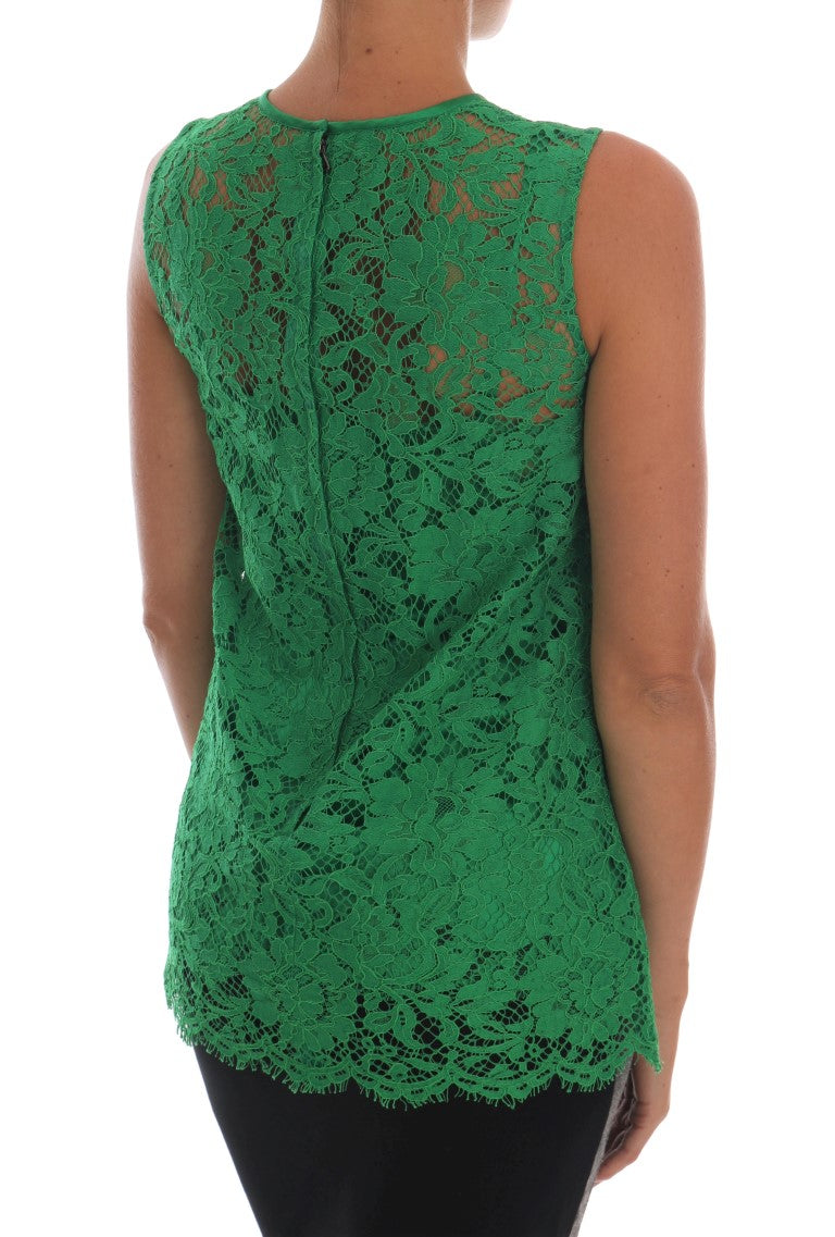 Indulge in the luxury and sophistication of this exquisite Dolce & Gabbana sleeveless blouse. Crafted with impeccable attention to detail, this top features a stunning green floral lace design that exudes romanticism and elegance, making it a perfect statement piece for your wardrobe. The blouse is a product of Italy, ensuring the highest standards of craftsmanship and style synonymous with the Dolce & Gabbana brand. Ideal for an array of occasions, this garment promises to enhance your ensemble with its distinct charm and premium quality.