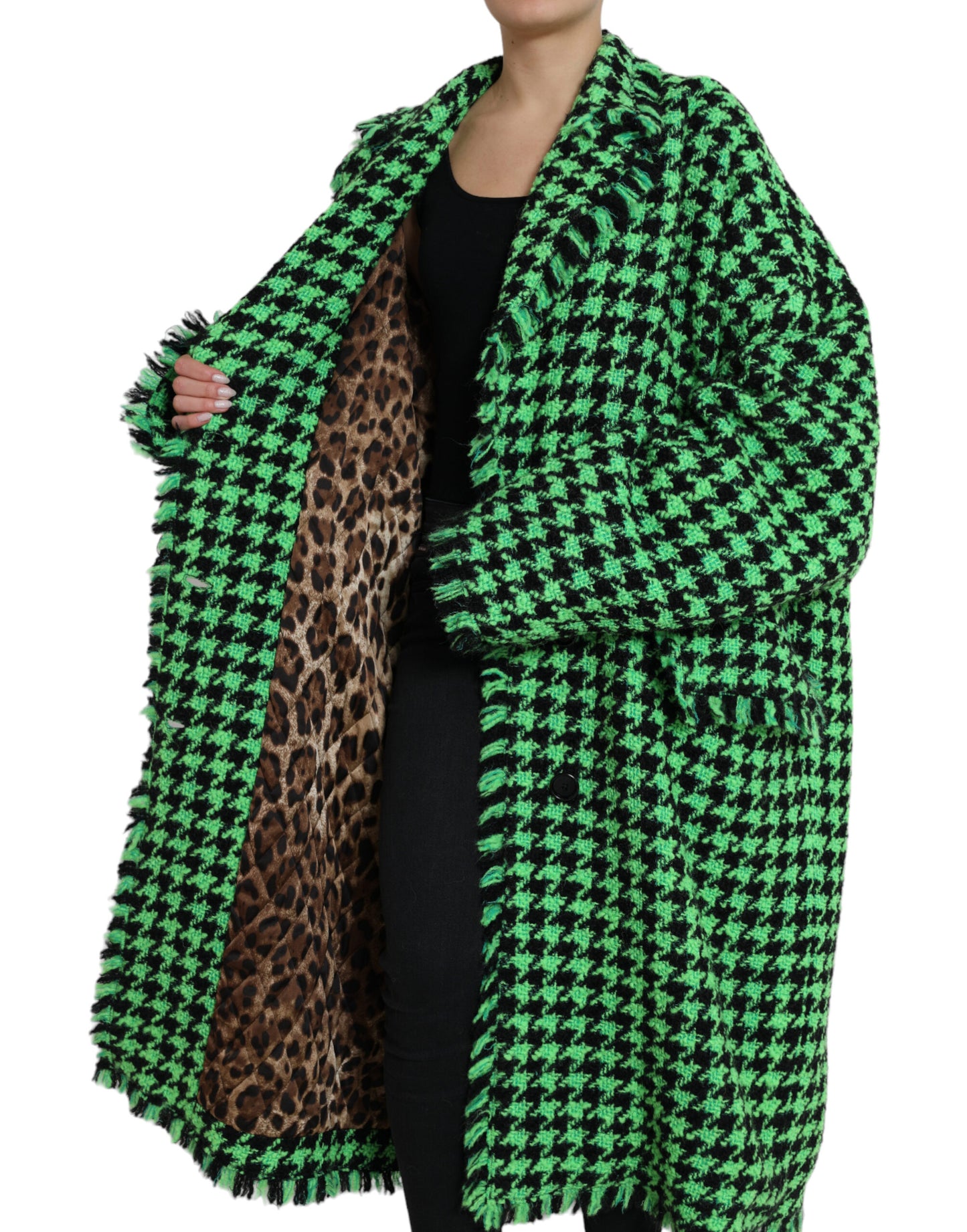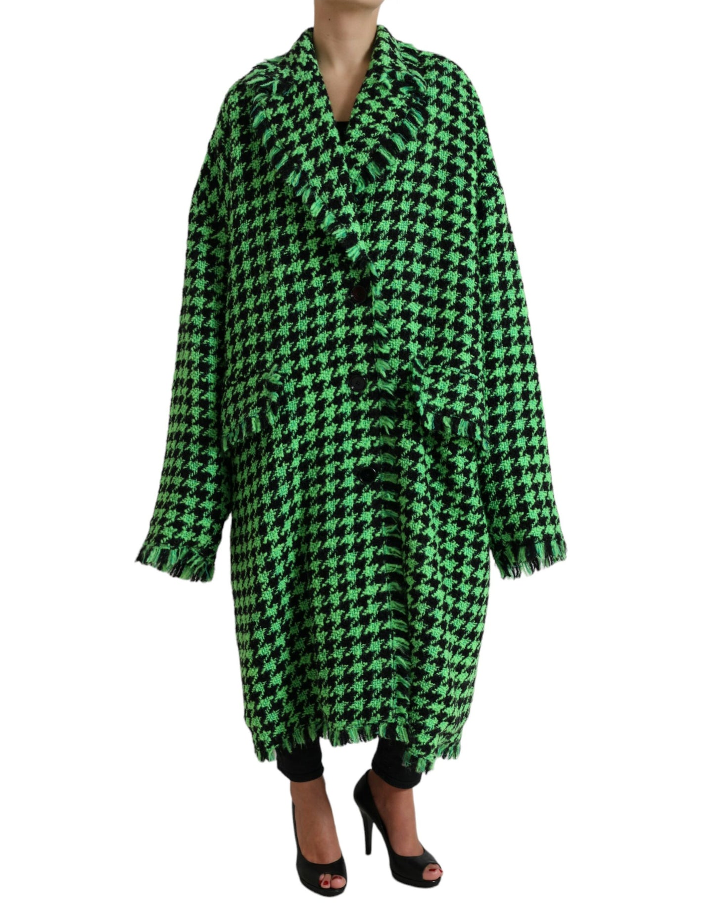 Green Houndstooth Full Sleeve Long Coat Jacket
