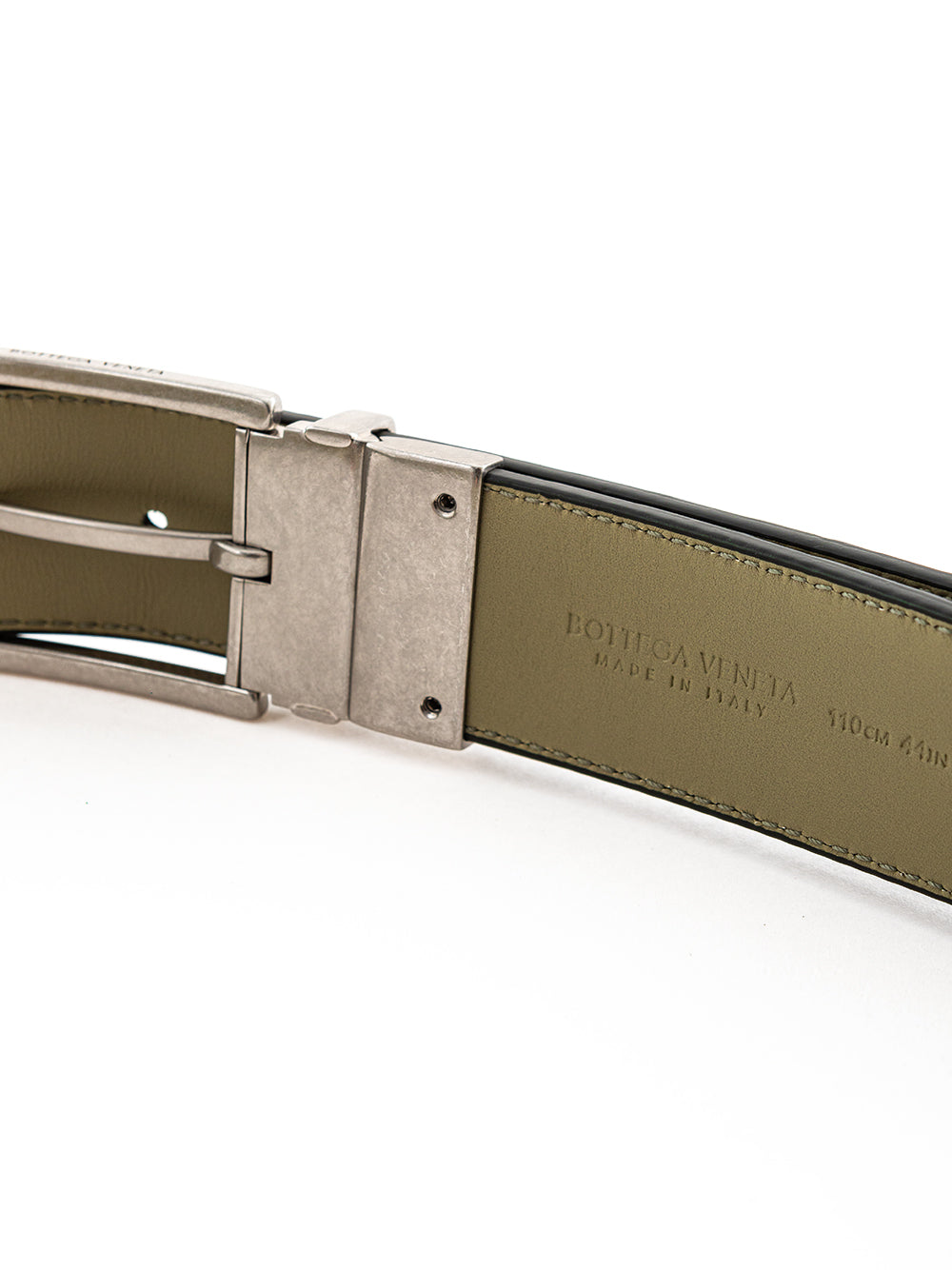 Adorn your ensemble with the sophistication of Bottega Veneta. This sumptuous 100% Authentic Emerald Green Intreccio Leather Belt, highlighted with a sleek silver metal buckle, is a stunning accessory designed to elevate any outfit. A perfect blend of luxury and practicality, made in Italy, ensures you emanate elegance with every wear.