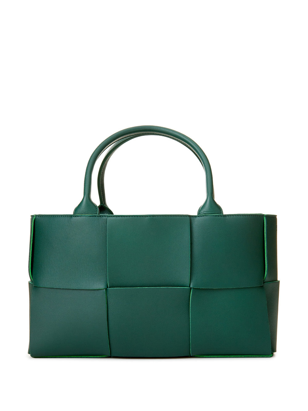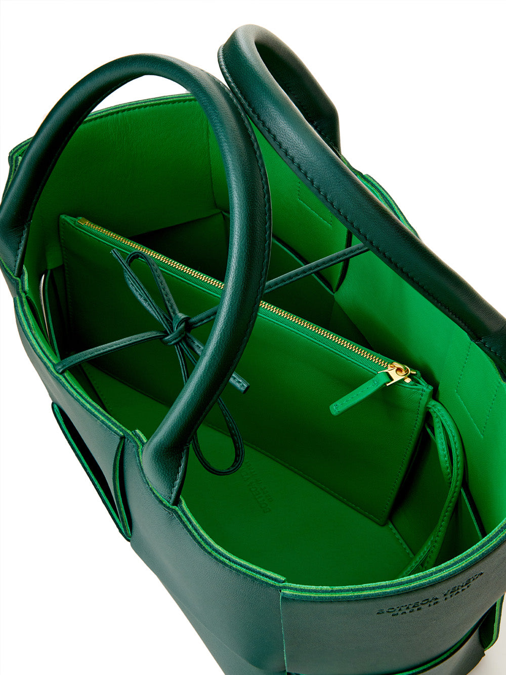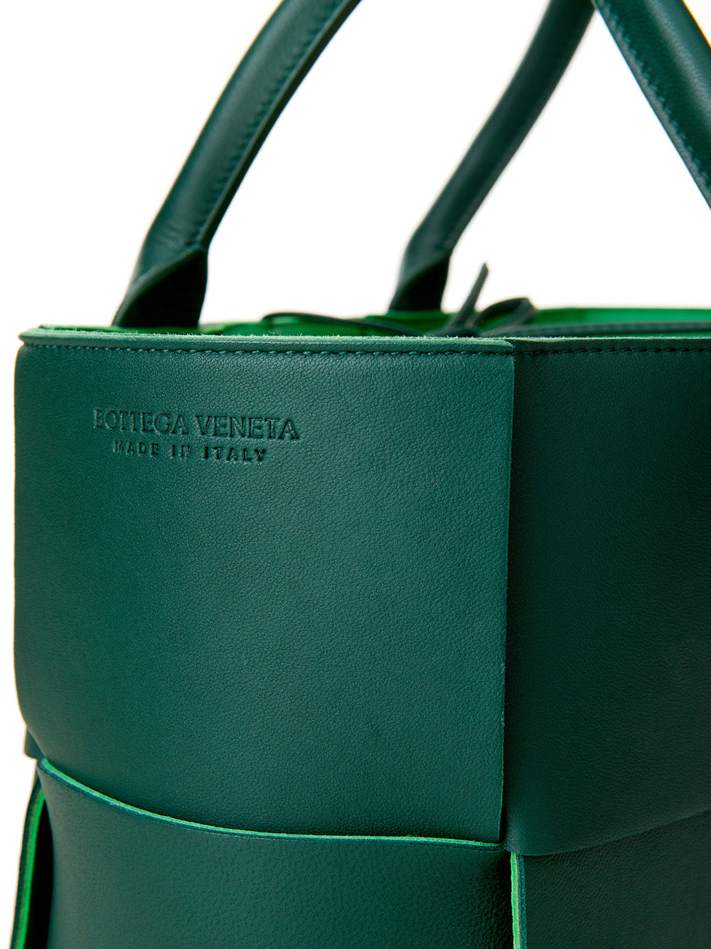 Distinguish yourself with the exquisite craftsmanship of a 100% Authentic Bottega Veneta Leather Tote Arco Bag. This stunning green accessory features the brand’s iconic intreccio design, complemented by a vibrant neon green lining. The structured silhouette is both practical and stylish, boasting a convenient handle, inner removable pochette adorned with the logo, and a secure closure with a leather lace. Crafted with utmost precision in Italy, this bag is not just a statement piece but a testament to luxury and quality.