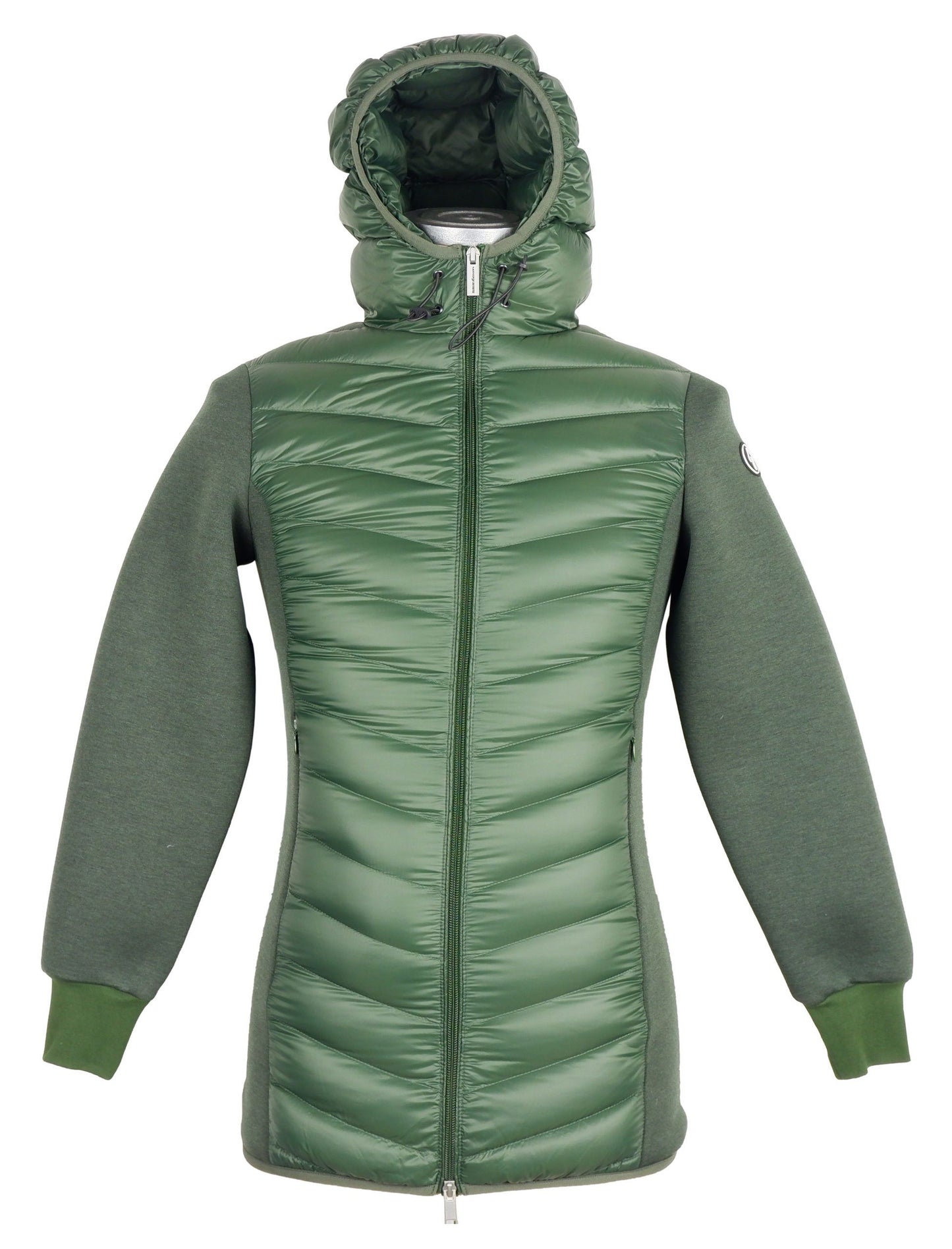 Step into luxury and style with the Centogrammi women’s long down jacket. This exquisite piece is designed for elegance and comfort, featuring a lavish dark green hue that adds a touch of sophistication to your wardrobe. The hood provides extra warmth and versatility, while the zip closure ensures a sleek and secure fit. The two side pockets add practicality, perfect for keeping your essentials close on chilly days. Expertly padded with duck feathers, this jacket promises to keep you cozy without compromising on style.
