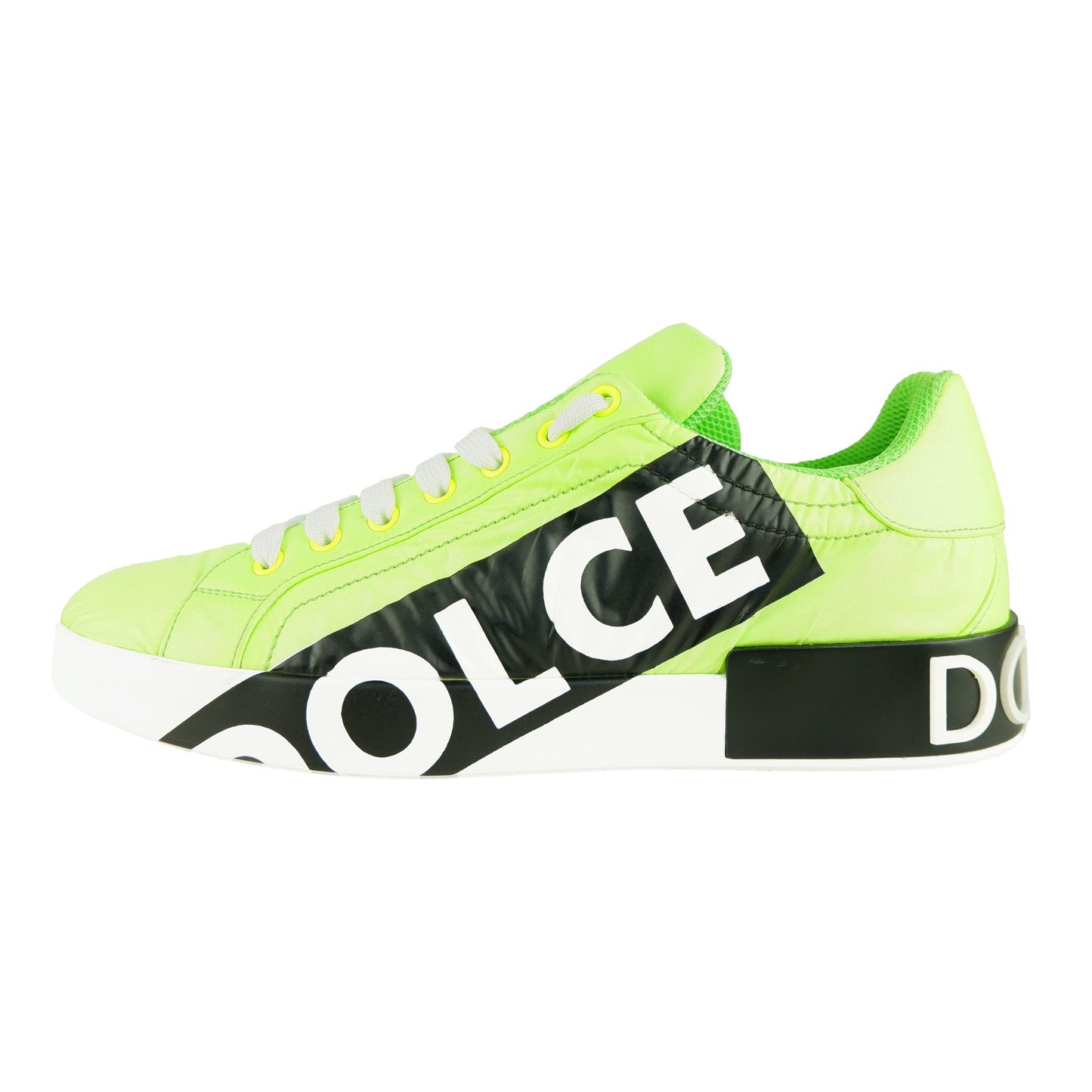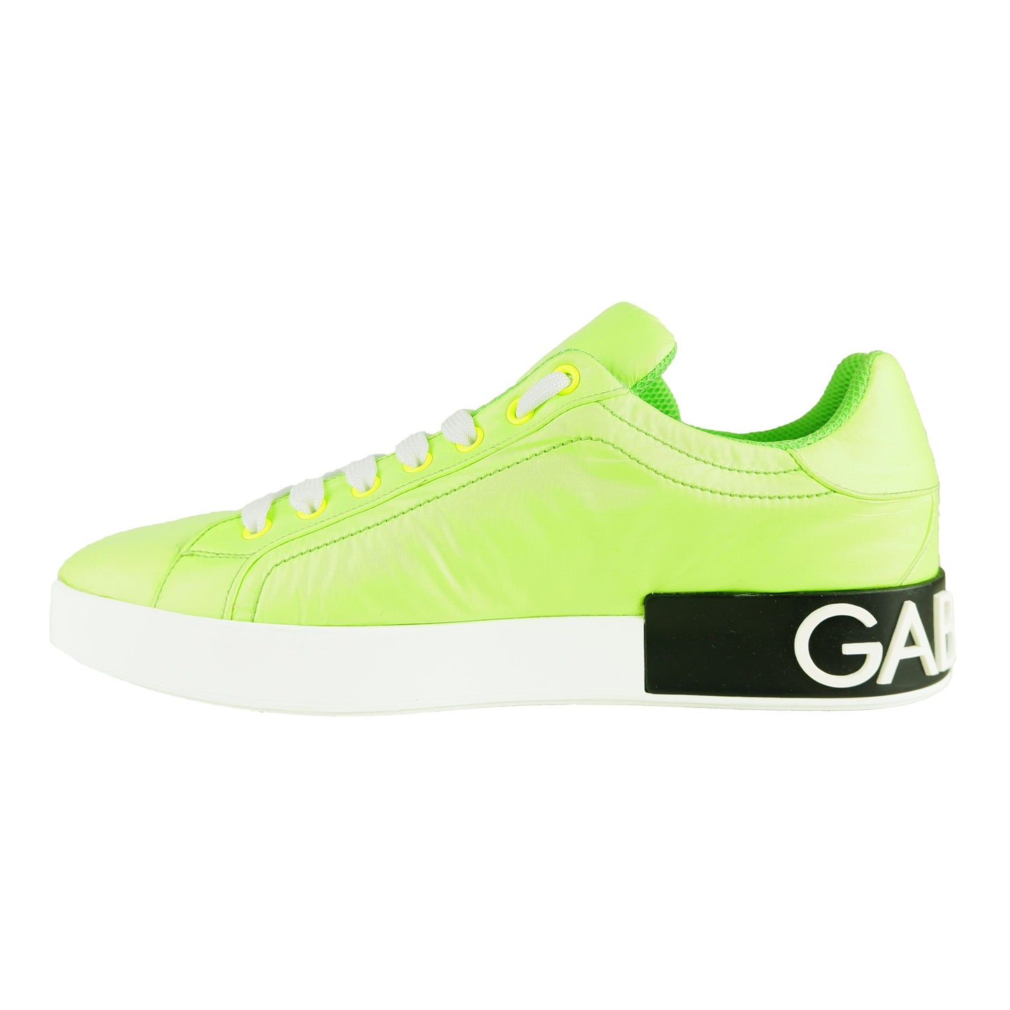 Step up your style game with these striking men’s sneakers, featuring a vibrant fluorescent nylon coating. Black stripes elegantly contrast with the white logo detail, accentuating the side panels and part of the wide sole. A fashion-forward choice that marries comfort with cutting-edge design, all meticulously crafted in Italy.