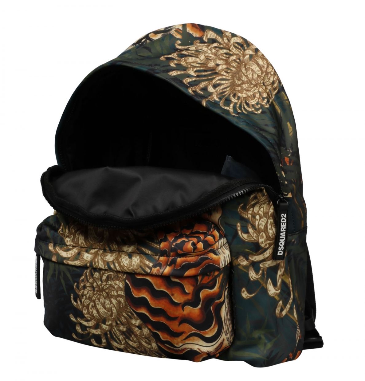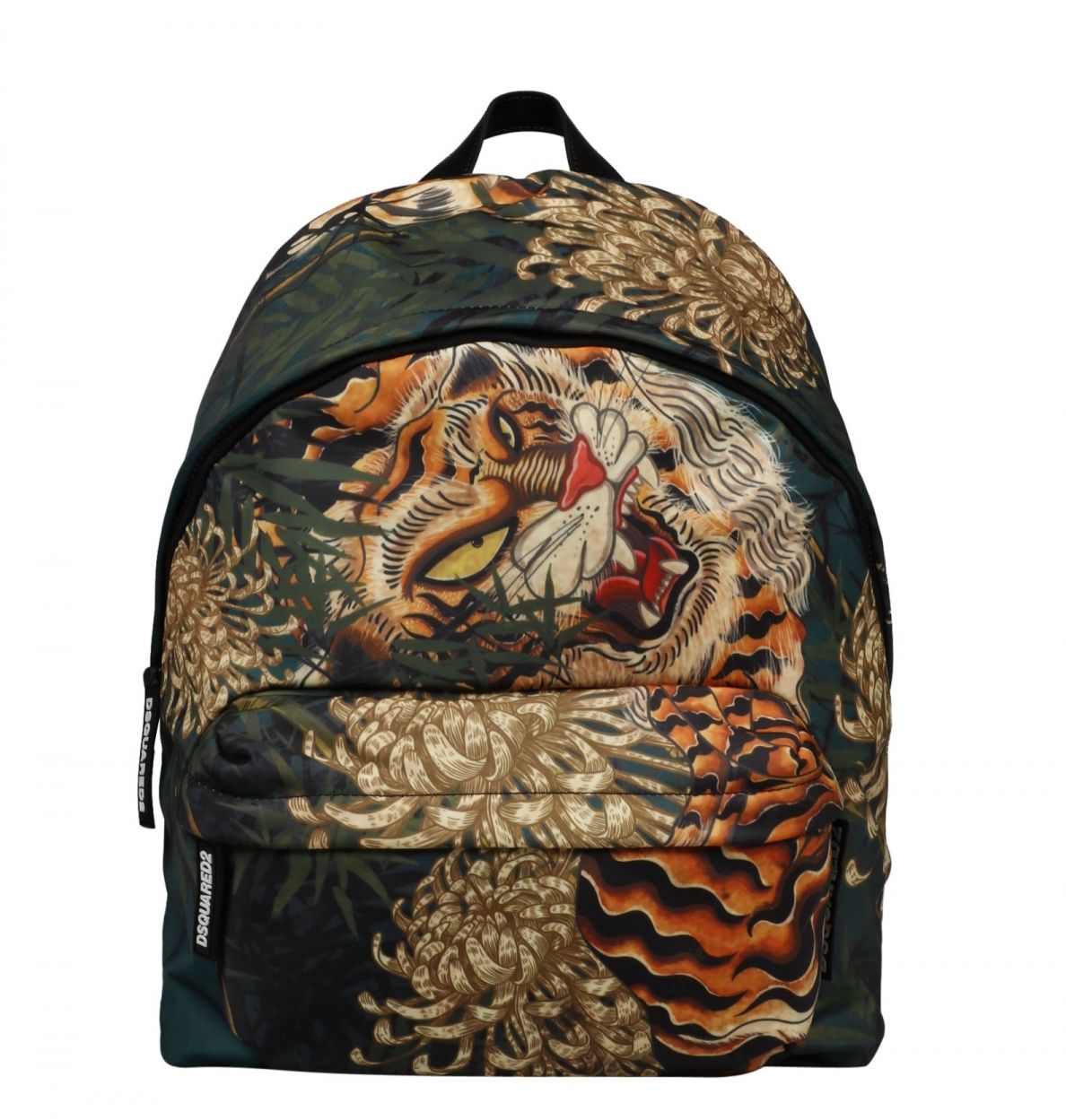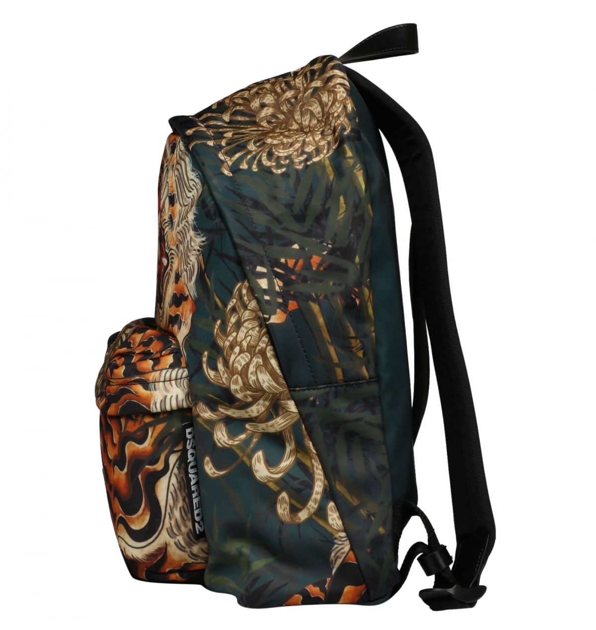 Step out in style with this vibrant green backpack featuring a striking yellow/gold tiger print design that is sure to turn heads. High-quality cow leather inserts grace the handle and interior, adding a luxurious touch to the piece. The backpack boasts two convenient compartments and a secure zipped closure, ideal for organizing your essentials while on the go. Measuring a practical 39x30x13 cm, it’s the perfect accessory for fashion-forward individuals seeking both functionality and flair.