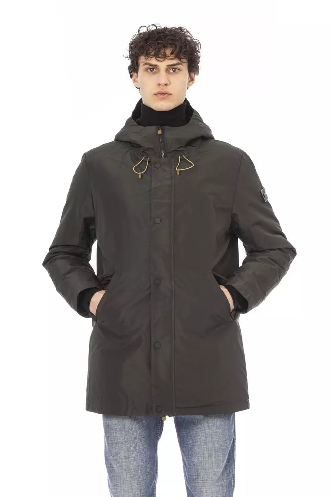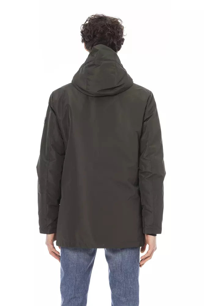 Elevate your outerwear collection with the Baldinini Trend Long Jacket – a perfect harmony of style and function. Crafted with meticulous attention to detail, this jacket features external welt pockets for a sleek appearance and practicality. The proudly displayed Baldinini monogram adds an exclusive touch, while the front closure is secured by a zip with a distinctive zip puller, and an additional button closure for a refined finish. Its rich green hue embodies sophistication, allowing for versatile styling options.