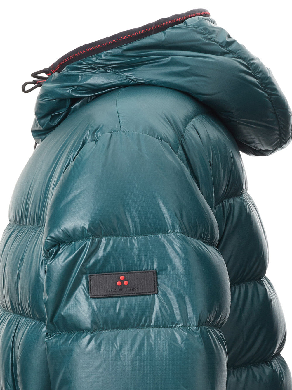 Embark on your urban adventures in style with the exquisite Peuterey Quilted Honova Jacket. Meticulously designed for the modern man, this 100% authentic jacket boasts a sleek green hue paired with a unique micro mosaic effect for an undeniably sophisticated look. Featuring a robust front black zip closure, conveniently placed side zipped pockets, and an adjustable hood, this jacket is tailored for both functionality and fashion. The addition of a rubber logo on the sleeve adds a touch of the brand’s signature flair. Perfect for transitioning between seasons, it offers a comfortable temperature range from +10°C to -5°C, making it an essential addition to your wardrobe.