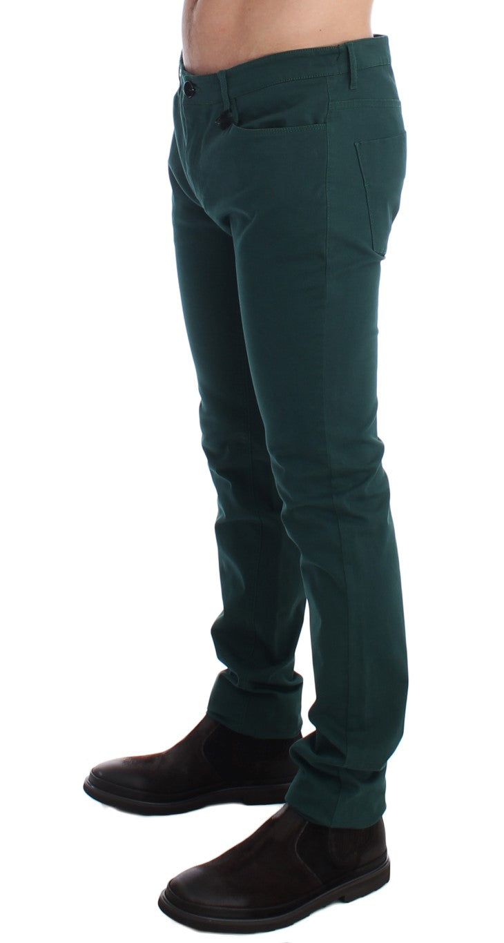 Elegant Green Super Slim Fit Cotton Trousers