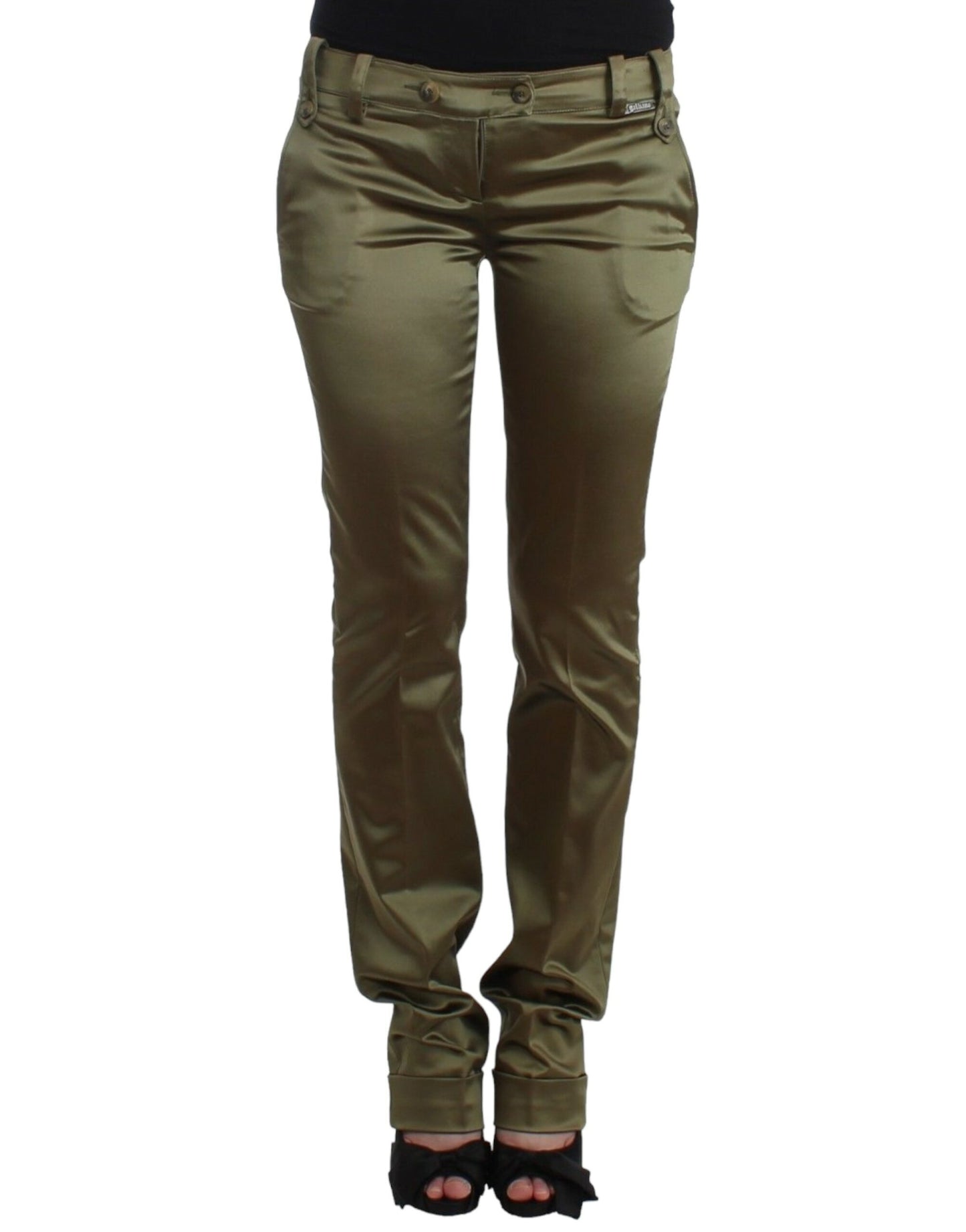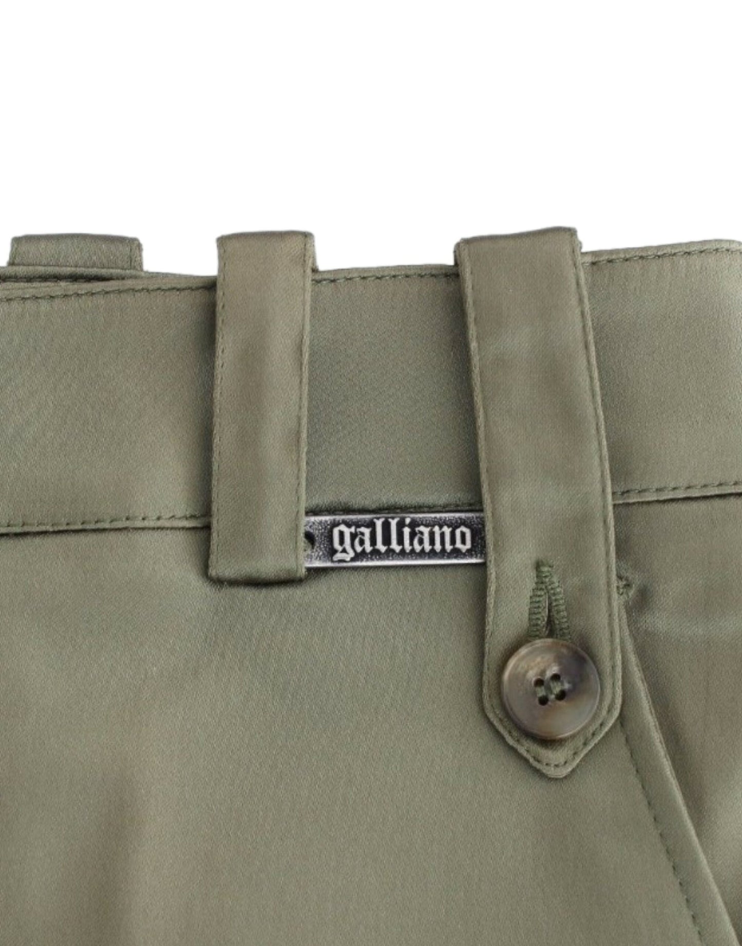 Step into elegance with these gorgeous new-with-tags, slim-fit pants by John Galliano. Crafted with a luxurious blend of materials for a comfortable yet flattering fit, these pants are a testament to classic style with a modern twist. Perfect for professional attire or a smart-casual look, the subtle green hue pairs effortlessly with a range of tops and shoes.