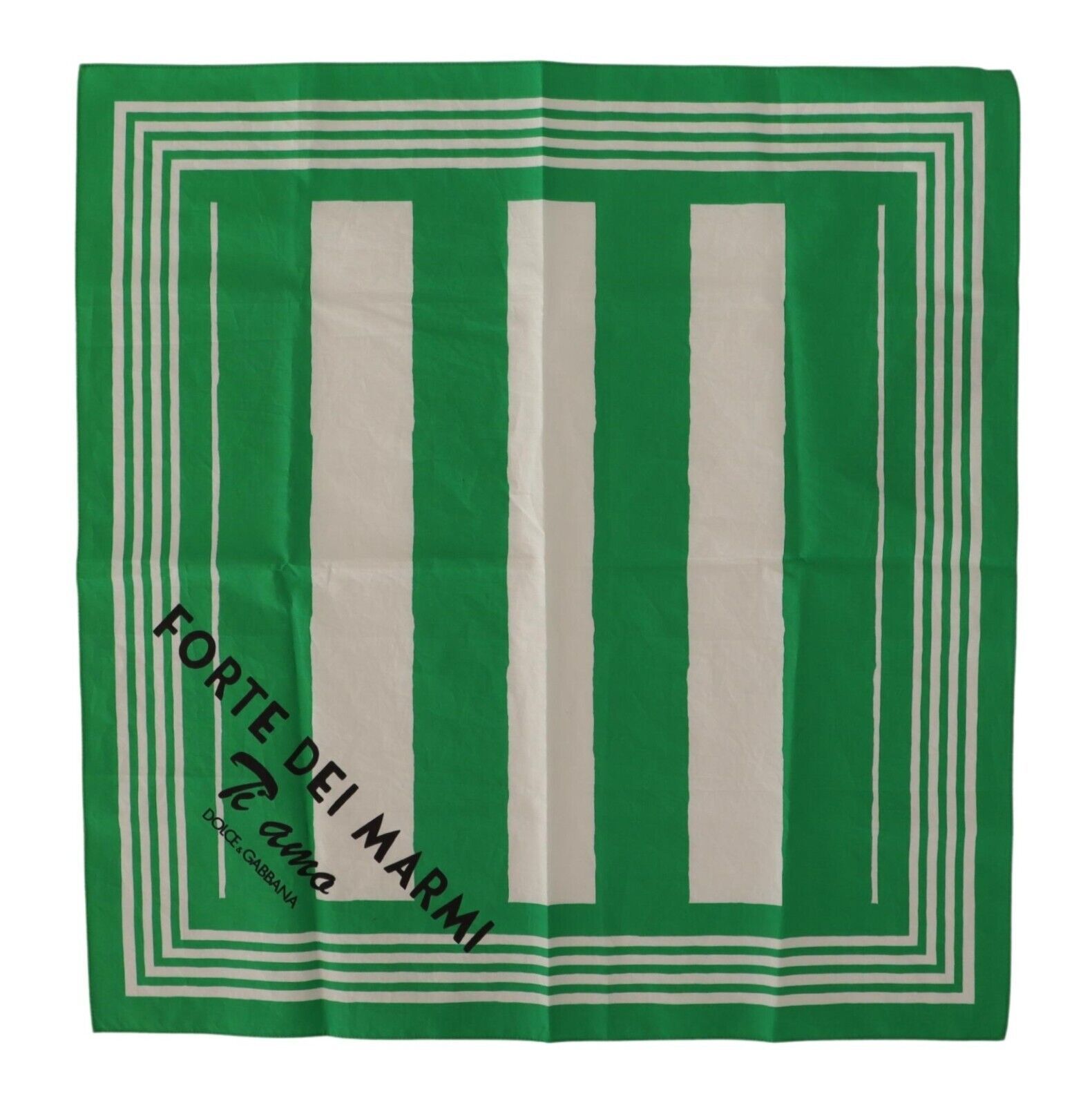 Discover the epitome of Italian elegance with this exquisite striped scarf by Dolce & Gabbana. Perfect for adding a touch of class to any ensemble, this luxurious accessory features a whimsical ‘Forte Dei Marmi Ti amo’ print that captures the romantic spirit of Italy.