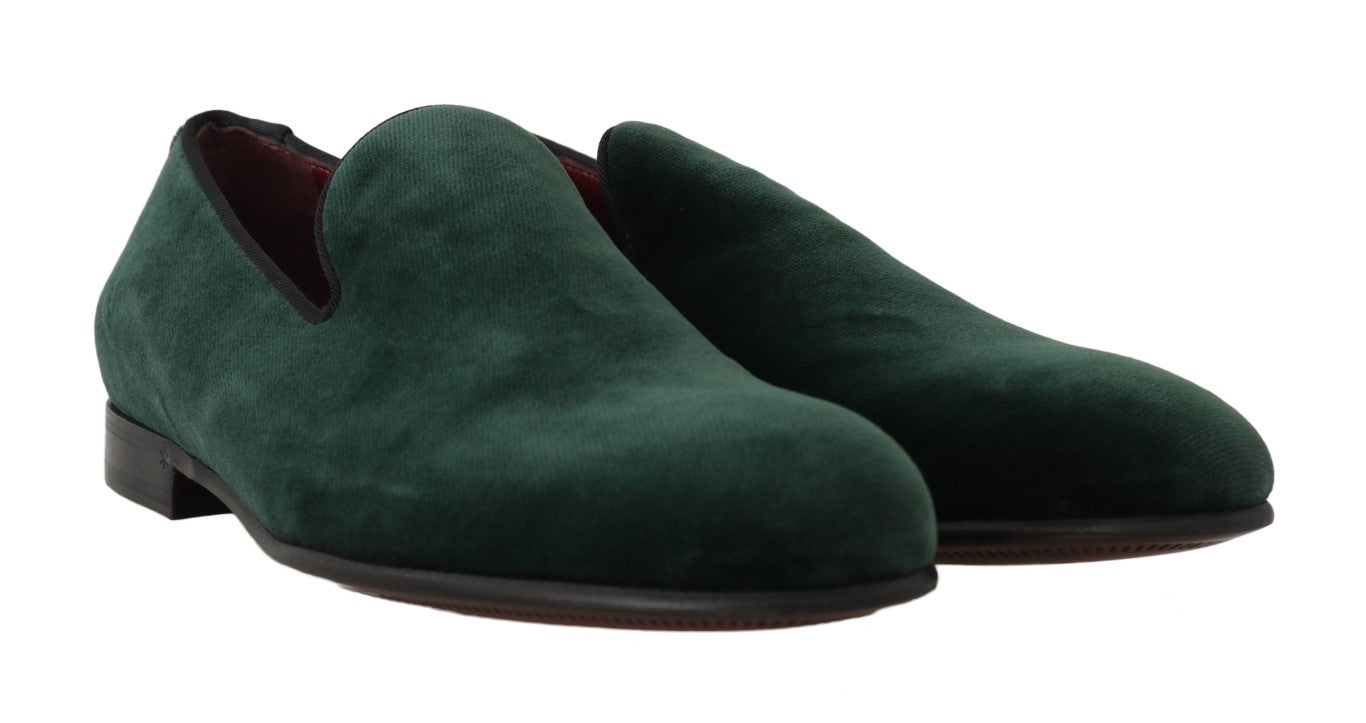 Step into luxury with these exquisite Dolce & Gabbana loafers, crafted from the finest suede in a rich green hue. These flat shoes are brand new with tags, promising an unworn treasure that blends comfort with high fashion. Designed with a sleek, slip-on style and a durable leather sole, they are perfect for those who appreciate elegance and a touch of effortless chic. With their iconic logo details, they speak volumes of their prestigious lineage, all while ensuring an unparalleled level of quality and comfort.