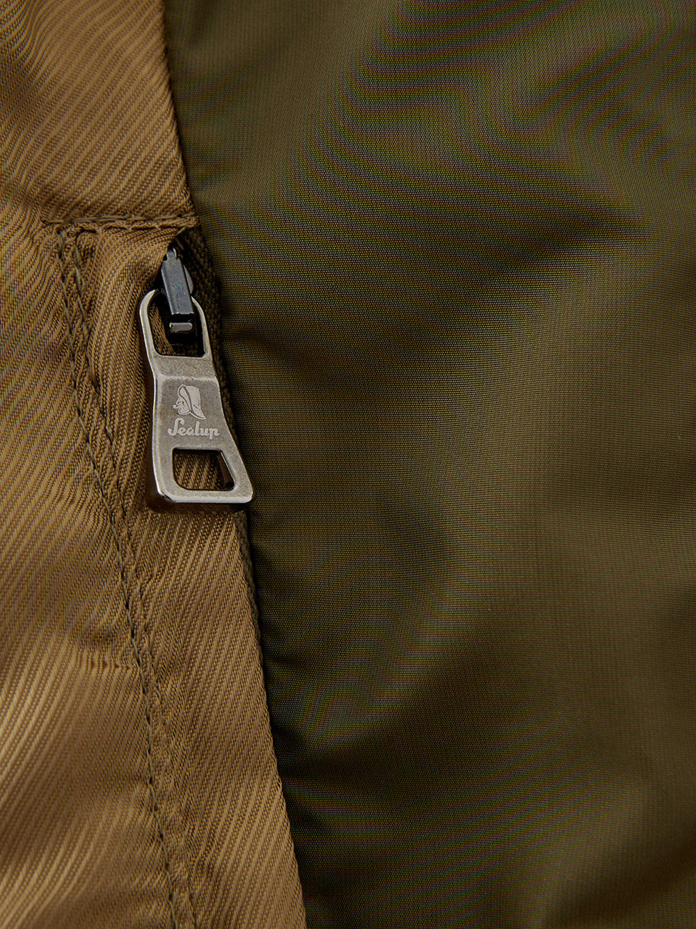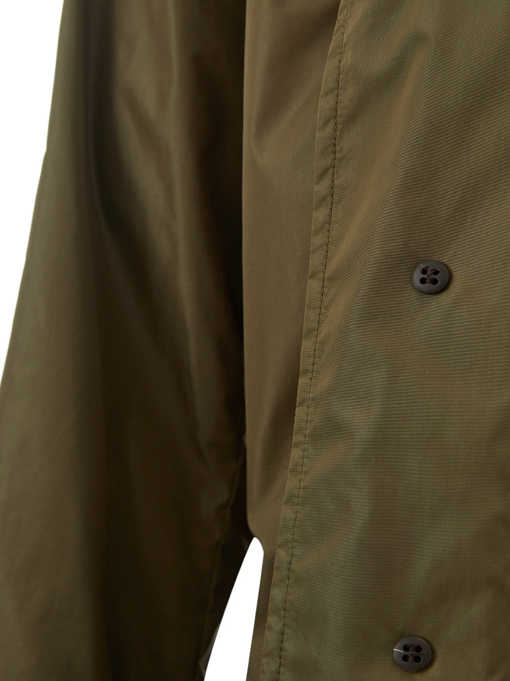 Gorgeous, brand new with tags, 100% Authentic Sealup trench jacket showcasing a sleek green hue in a technical fabric. This refined outerwear features a single-breasted design with a front covered button closure and a partly lined interior ensuring both style and comfort.
