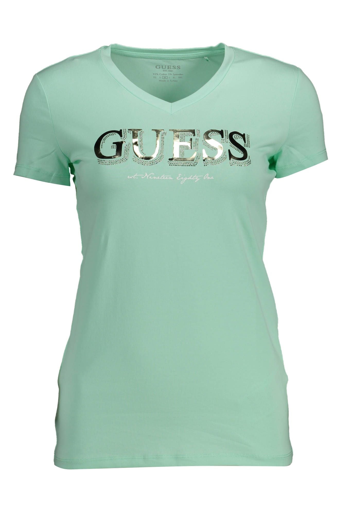 Introducing the epitome of casual chic – the Guess Jeans iridescent rhinestone V-neck tee. A dazzling affair of glimmering applications, this t-shirt elevates your everyday style with a sparkle. Short-sleeved and effortlessly flattering, it’s the perfect green top for those who love to blend comfort with glamour.