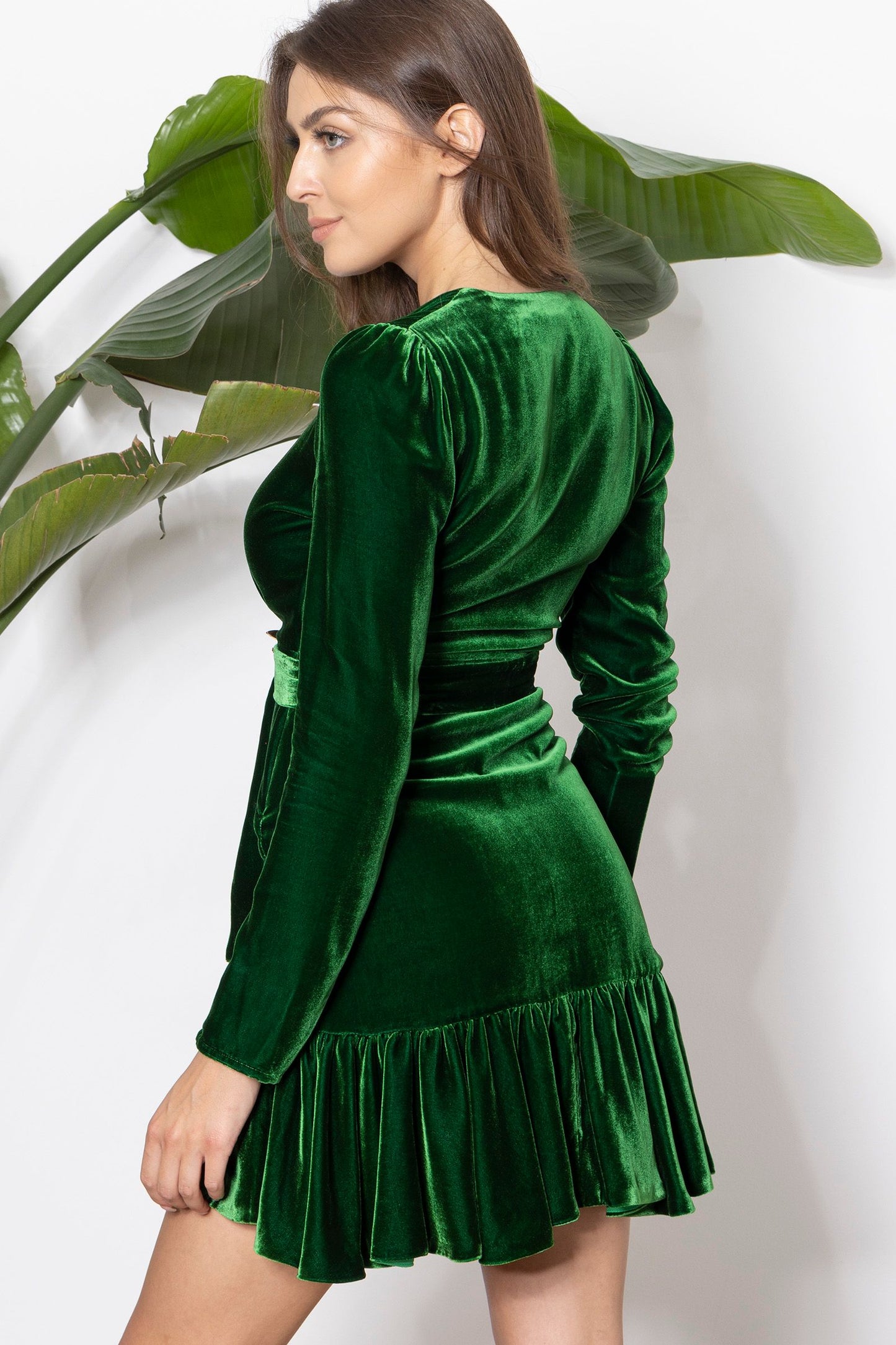 Elegant Green Velvet Cocktail Dress with V-Neck
