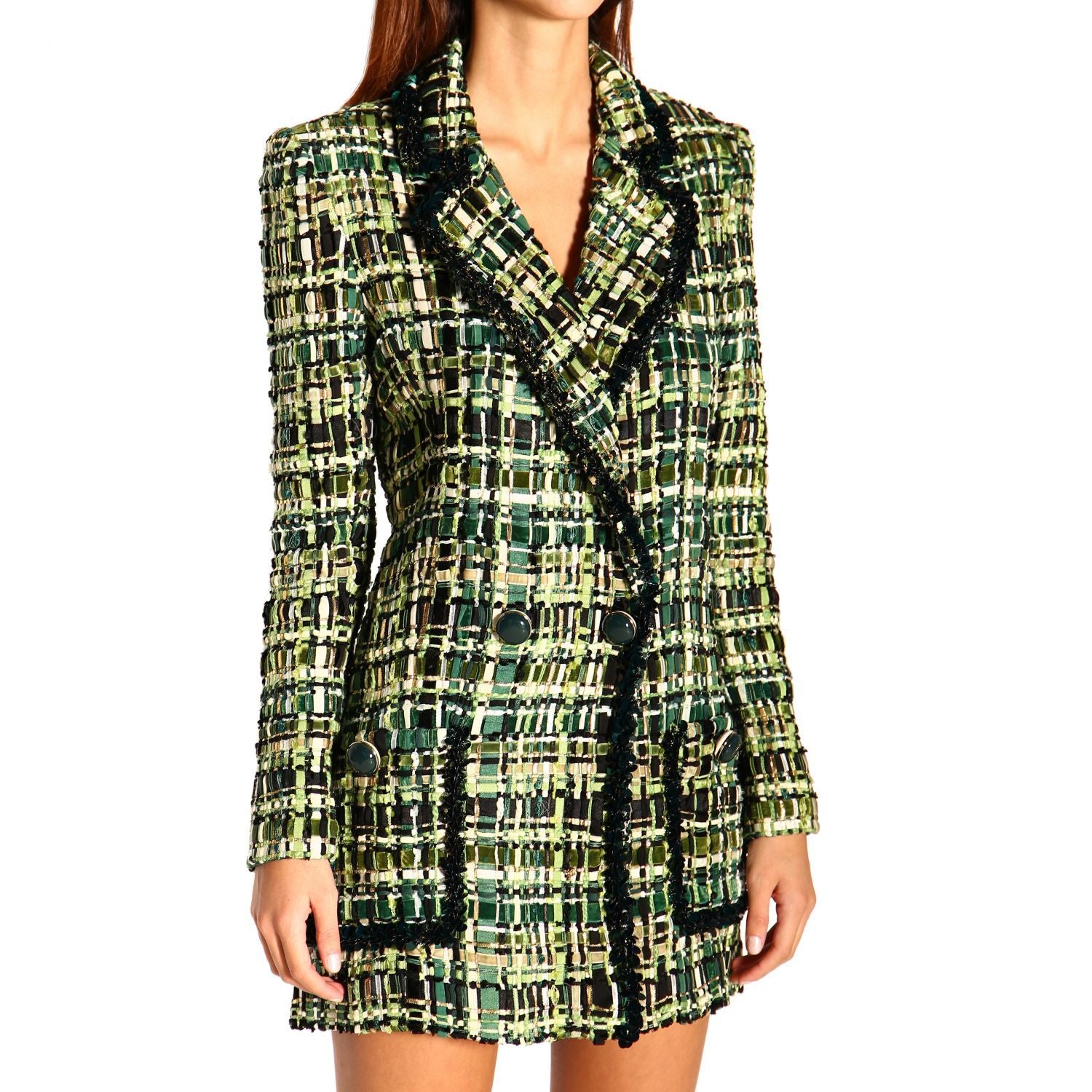 Embrace sophistication with this Elisabetta Franchi jacket, featuring a rich forest green shade that exudes an air of mystery and elegance. Designed for the discerning fashionista, this piece comes with a classic front button closure and a practical 2-pocket design, perfect for a seamless blend of style and function.