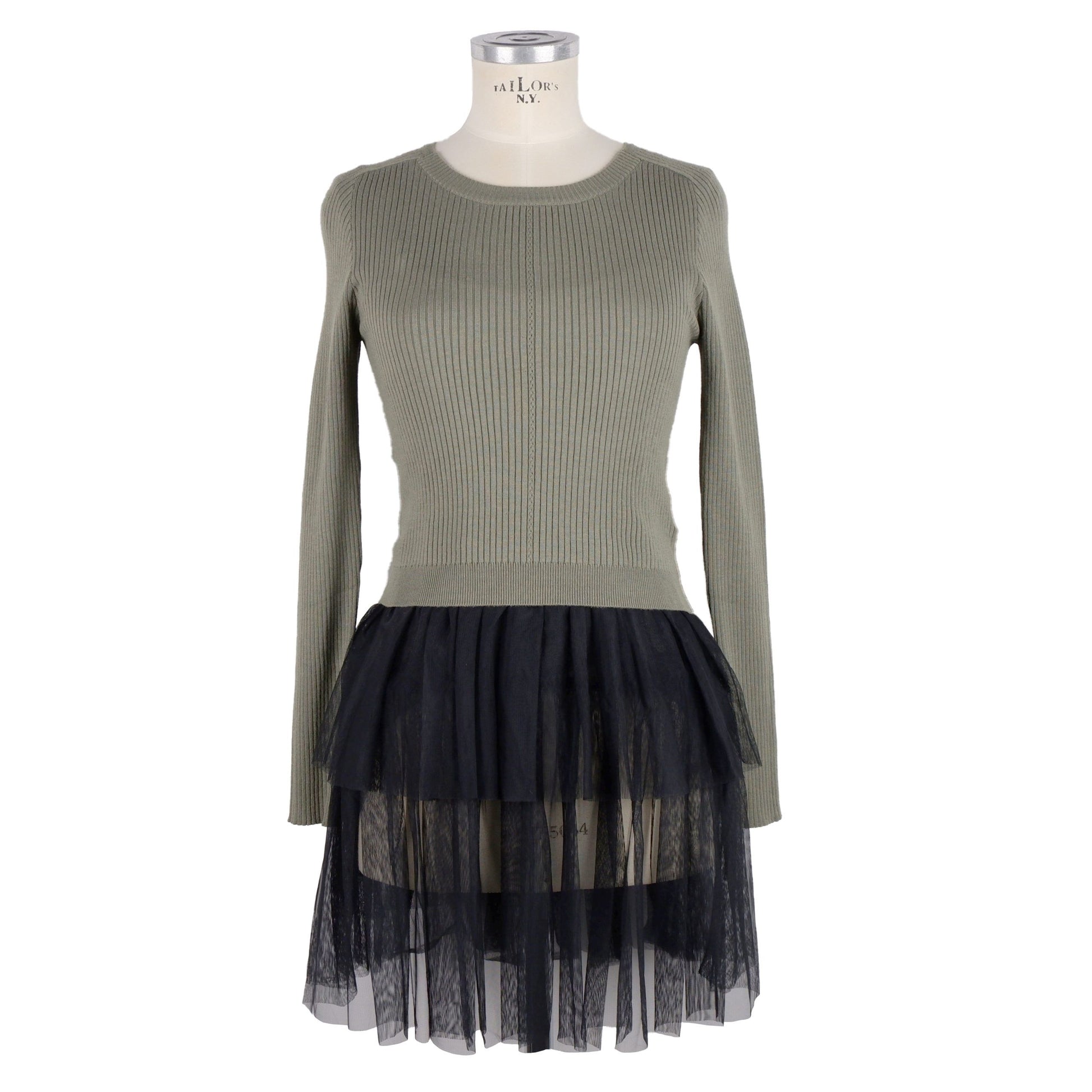 Chic Green Ribbed Sweater with Belt and Tulle Tank Combo