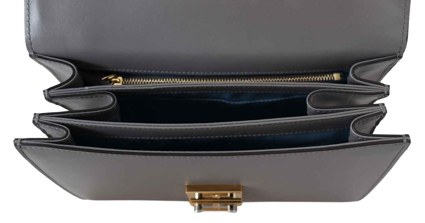 Elegant Grey Leather Shoulder Bag with Gold-Toned Metal
