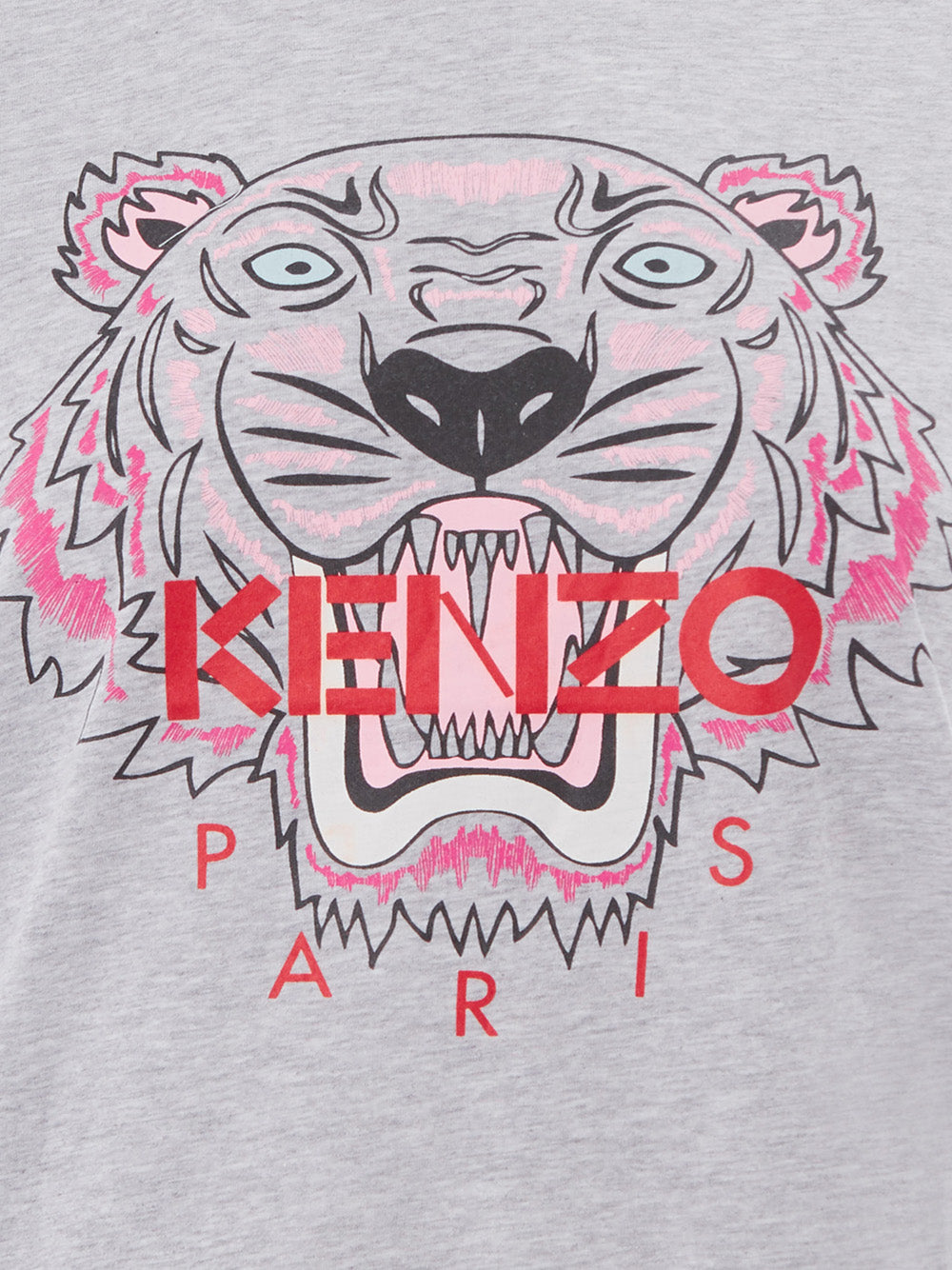 Unveil your stylish edge with this stunning, new-with-tags 100% Authentic Kenzo T-Shirt. Crafted with exquisite care, this grey melange tee showcases a bold, contrasting tiger print paired with a vibrant pink logo for a striking look. The regular fit design ensures comfort with a touch of sophistication, making it a versatile addition to your wardrobe. Manufactured with pride in Portugal, it’s the epitome of casual luxury.