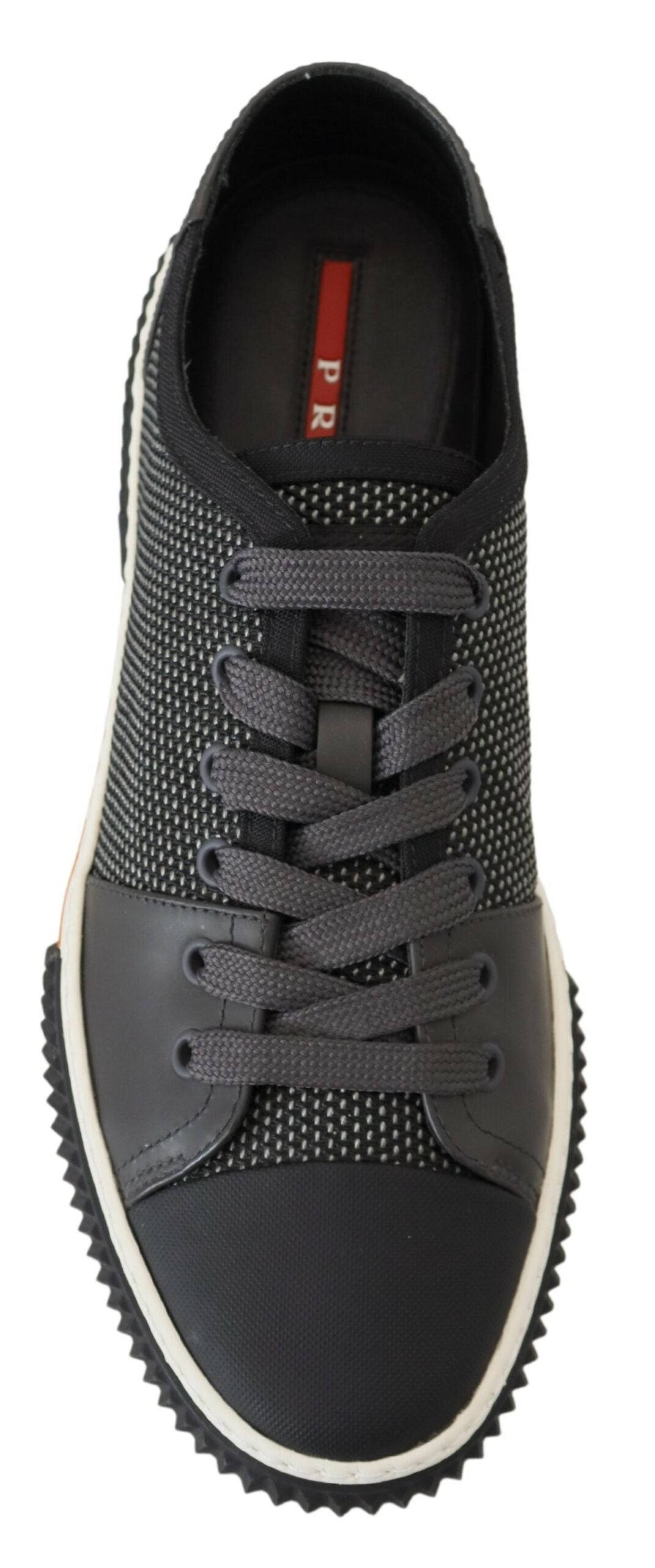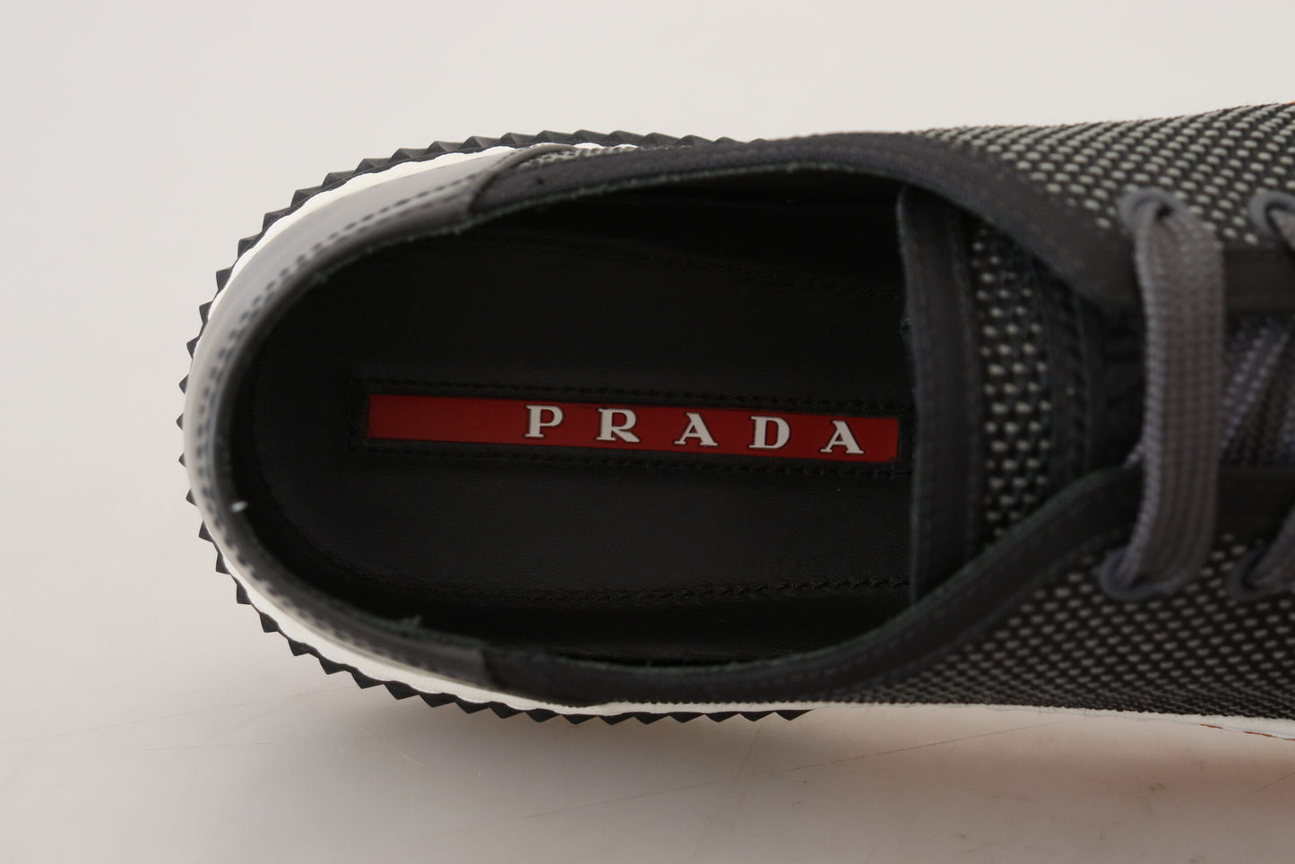 Step into sophistication and top-notch Italian craftsmanship with these elegant Low-top sneakers by Prada. Discover the perfect blend of functionality and luxury, combining technical mesh with rubberized calf leather. The rubber sole is accented by an eye-catching colorful ping pong ball textured band, while grooved rubber detailing offers a unique finish. These sneakers embody exclusivity and are a testament to the iconic Prada brand.