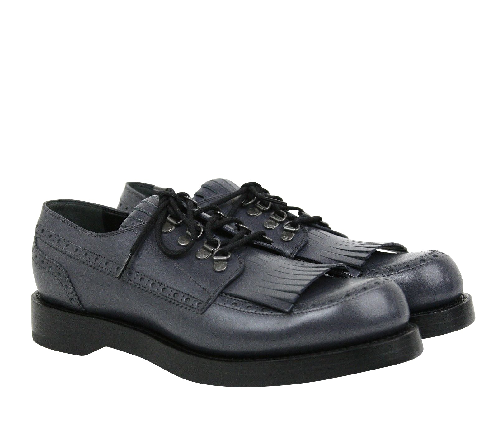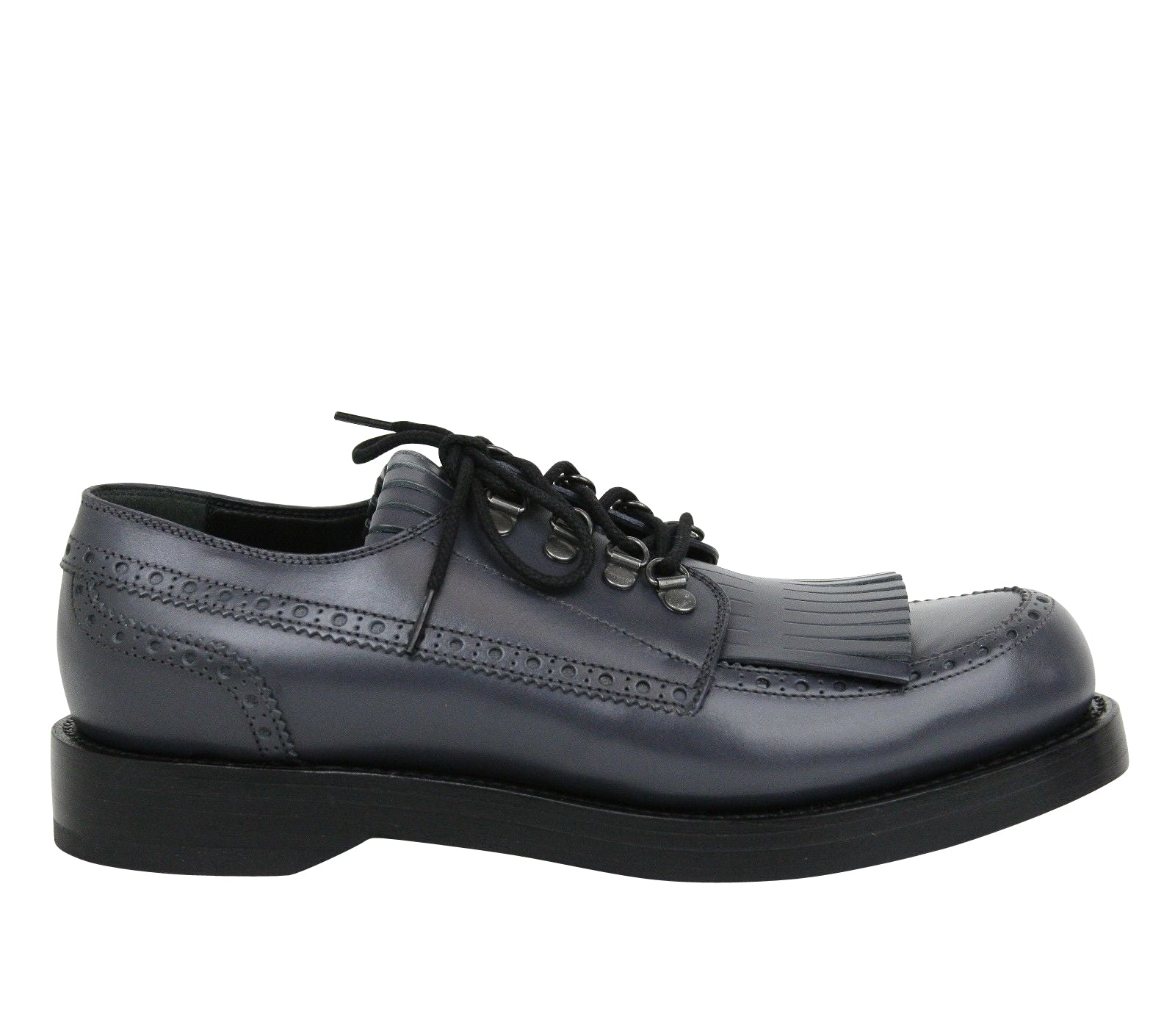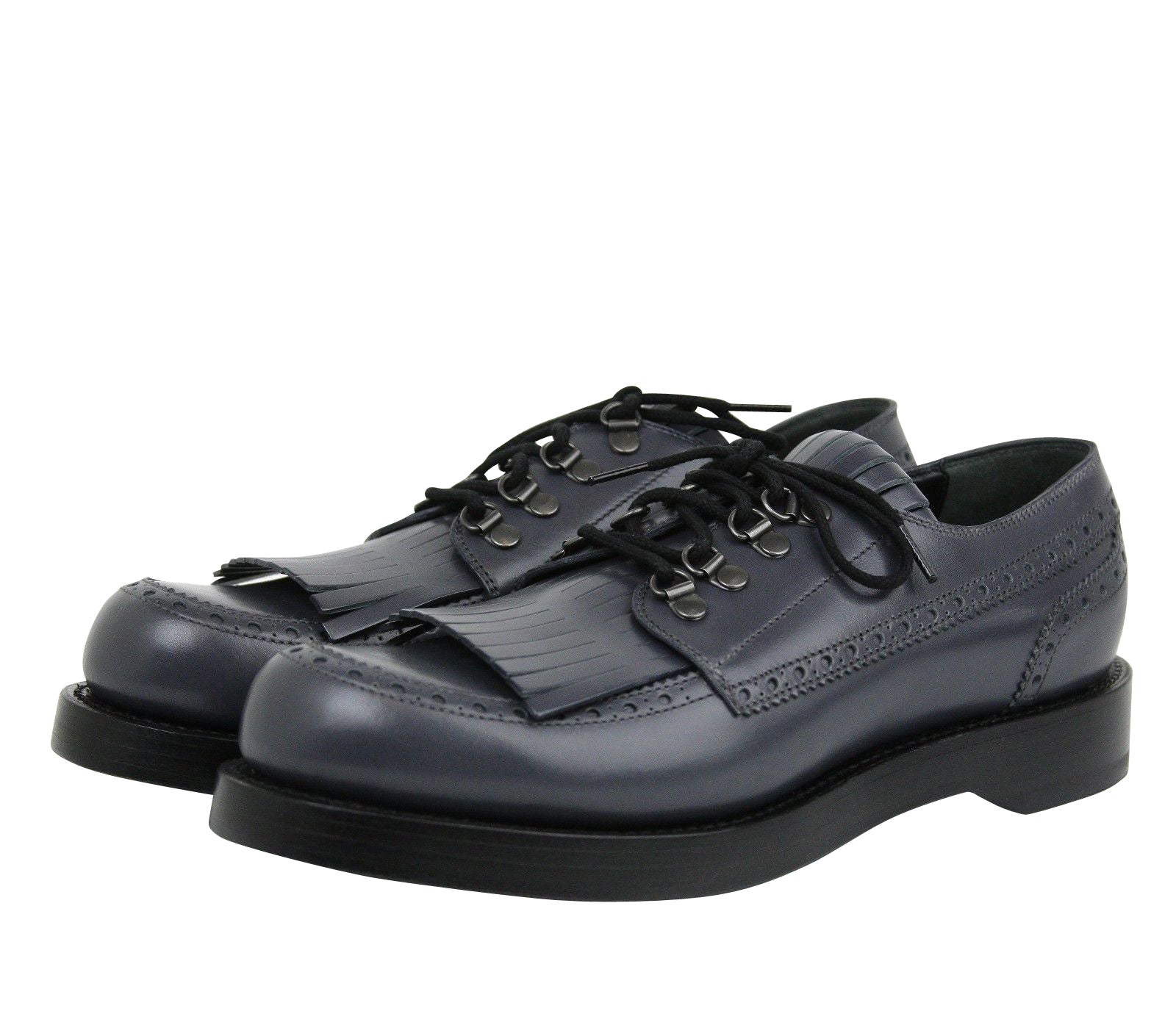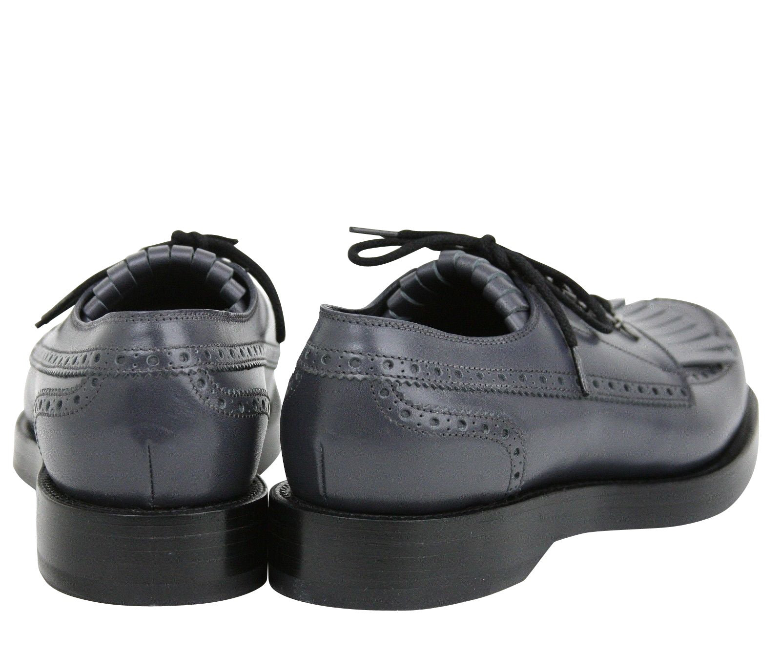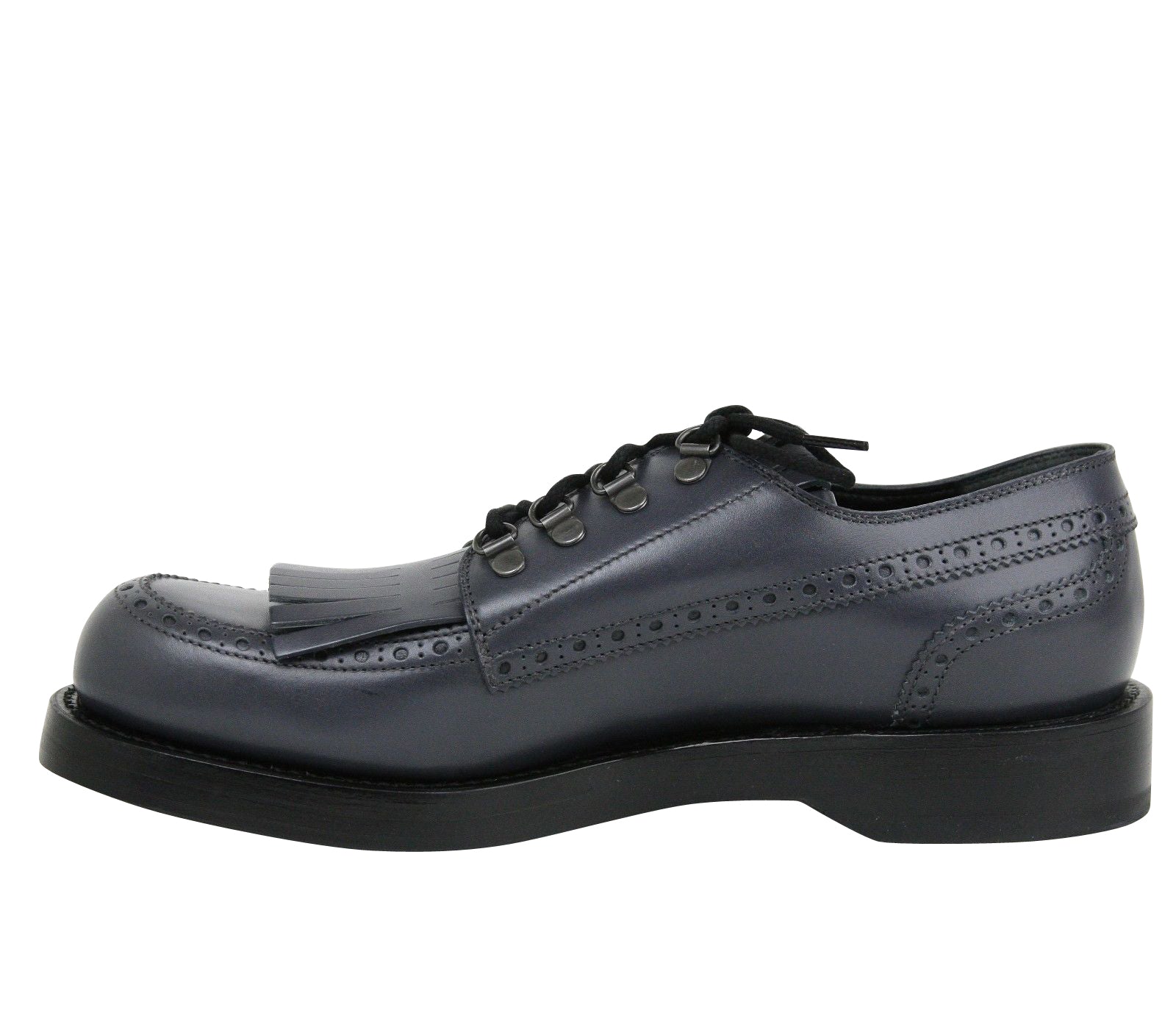 Gucci Men's Fringed Brogue Bluish Gray Leather Lace-up Shoes