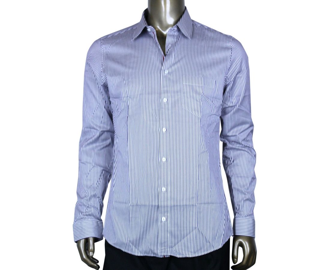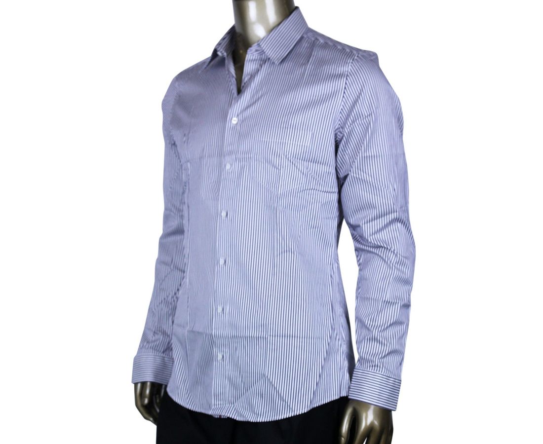 Gucci Men's Stripped Slim Navy / White Cotton Dress Shirt
