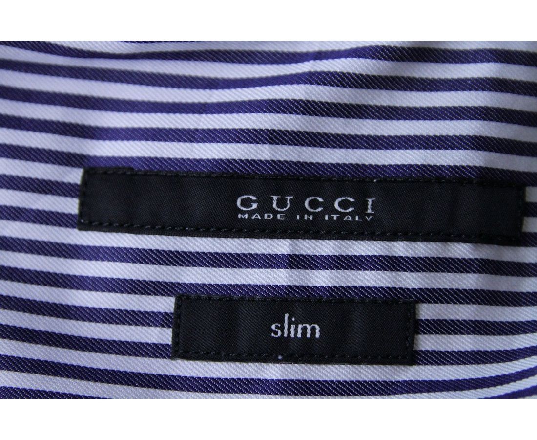 100% Cotton; Fit: Slim Fit; Cuff Style: Standard Cuff; Sleeve Length: Long Sleeve; Size Type: Regular; Measurements: G 38 / US 15: Shoulder: 16 3/4; Sleeve: 27.5; Chest: 19 3/4; Total Length: 31 inches; Original Gucci tags and authenticity card included; Made in Italy