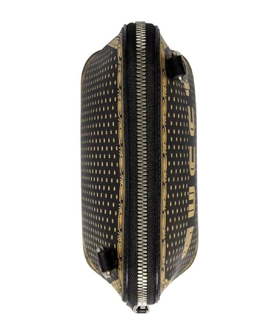 Gucci printed leather crossbody bag with "GUCCY" in SEGA® font; Silk lining; Two-way zip-around top closure; Style: Shoulder Bag; Measurements: Length: 6.5; Height: 7; Depth: 3; Strap Drop: 24.5-31.5; Width: 6.5 Inches; Original Gucci tags, dust bag and authenticity cards included; Made in Italy.