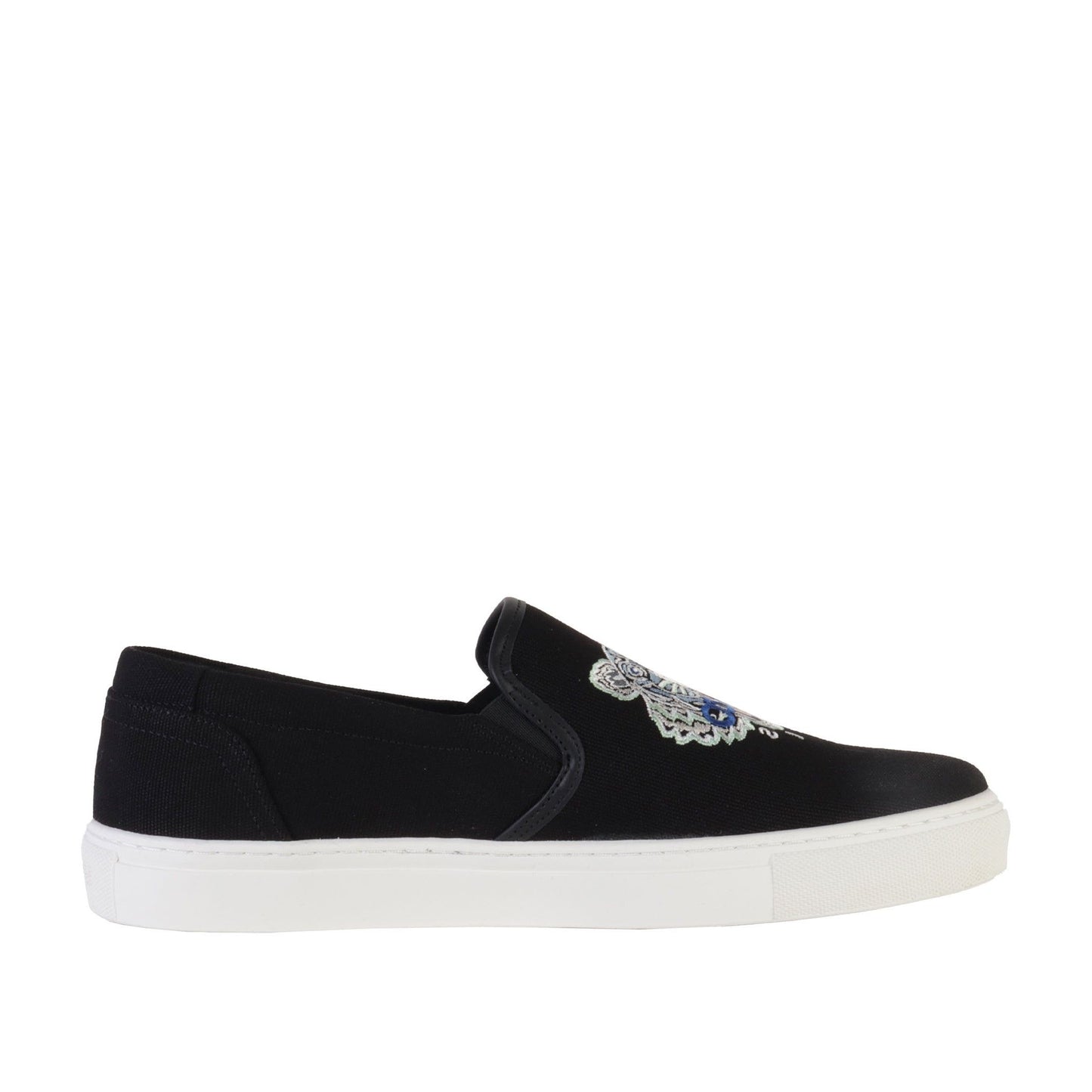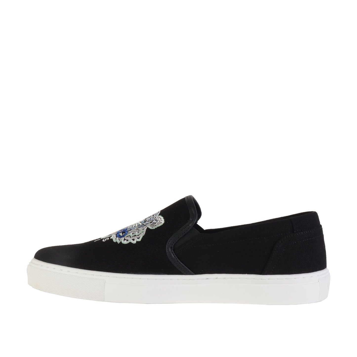 Indulge in the fusion of luxury and comfort with these authentic Kenzo slip-on sneakers. Crafted with precision in Italy, these shoes feature a 100% cotton upper and a 100% rubber sole, ensuring both high quality and lasting durability. The sleek black hue and subtle logo details provide a sophisticated touch to any ensemble. Make a statement with this exclusive footwear that epitomizes high craftsmanship and chic style.