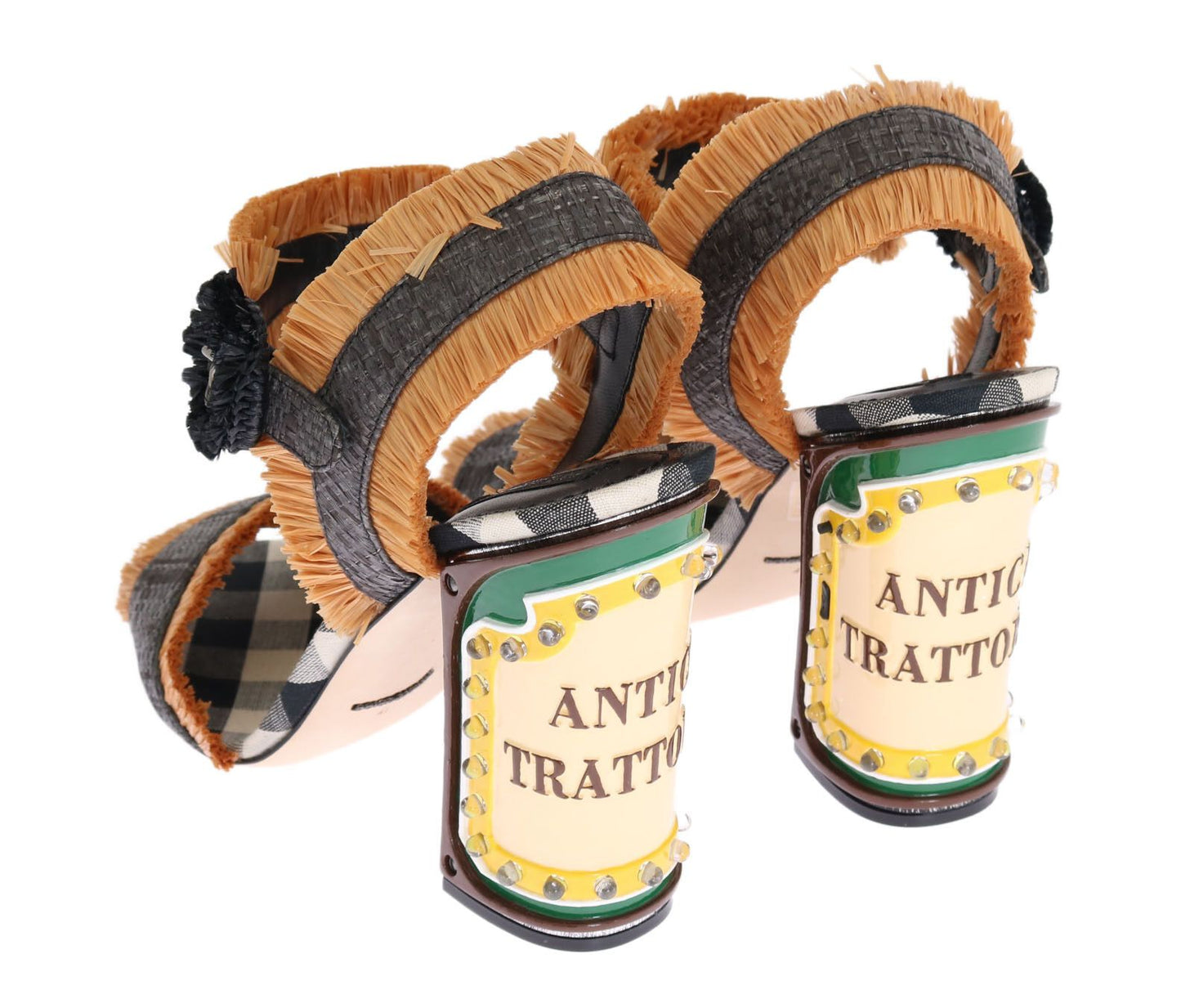 Illuminate your steps with these exquisite Dolce & Gabbana sandals, featuring enchanting LED lights embellished heels. Crafted with the signature Antica Trattoria motive, these beige and gray sandals are more than just footwear; they’re a statement. Imbued with Italian elegance, the ankle strap design and leather sole ensure both style and comfort. Perfect for special events where you aim to shine, literally! Complete with an integrated battery, regular charging cable, and convenient ON Button, these sandals blend technological charm with fashion-forward design.