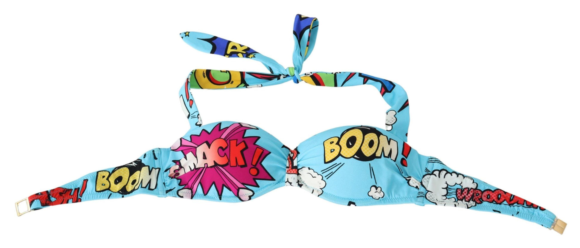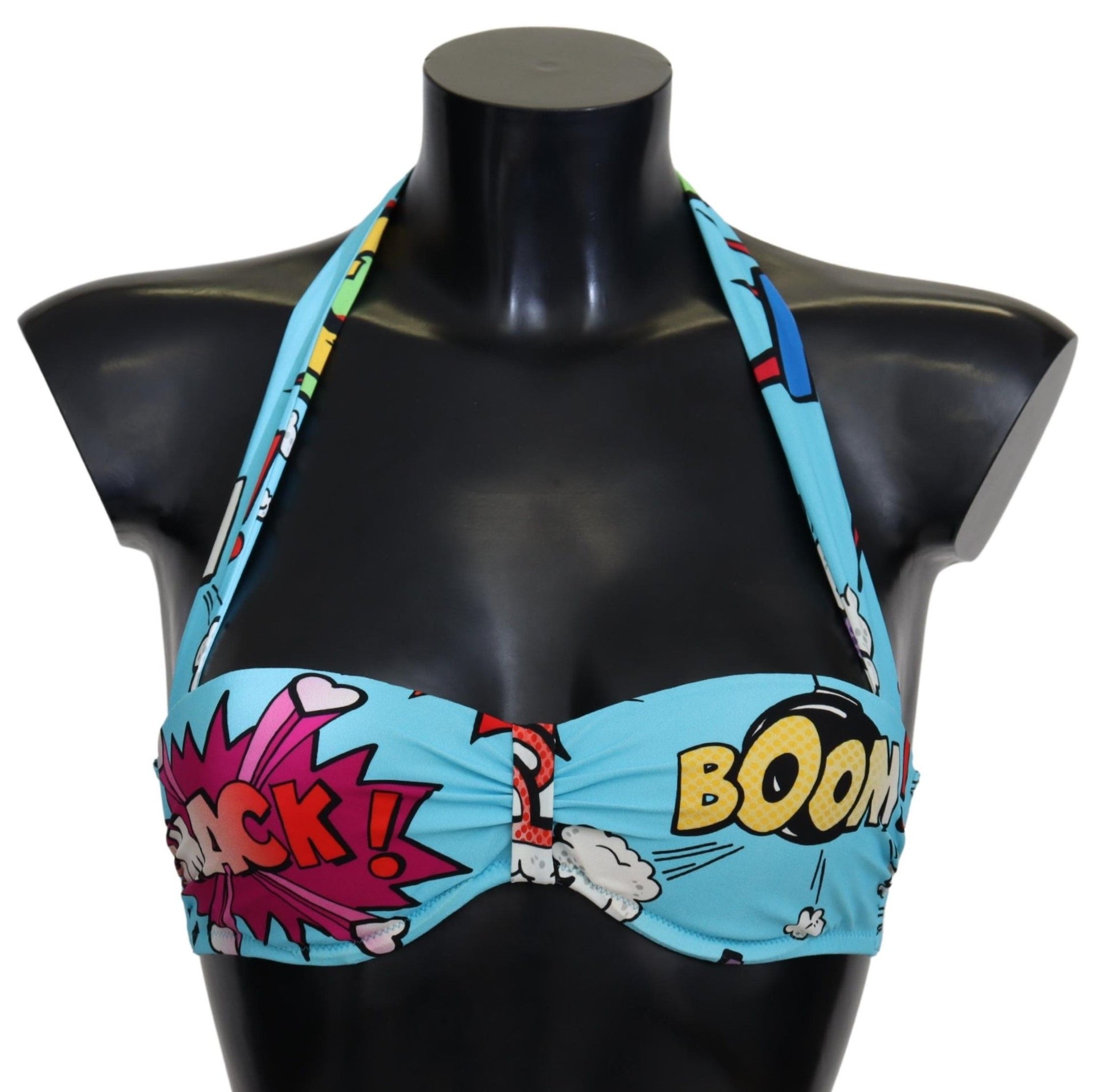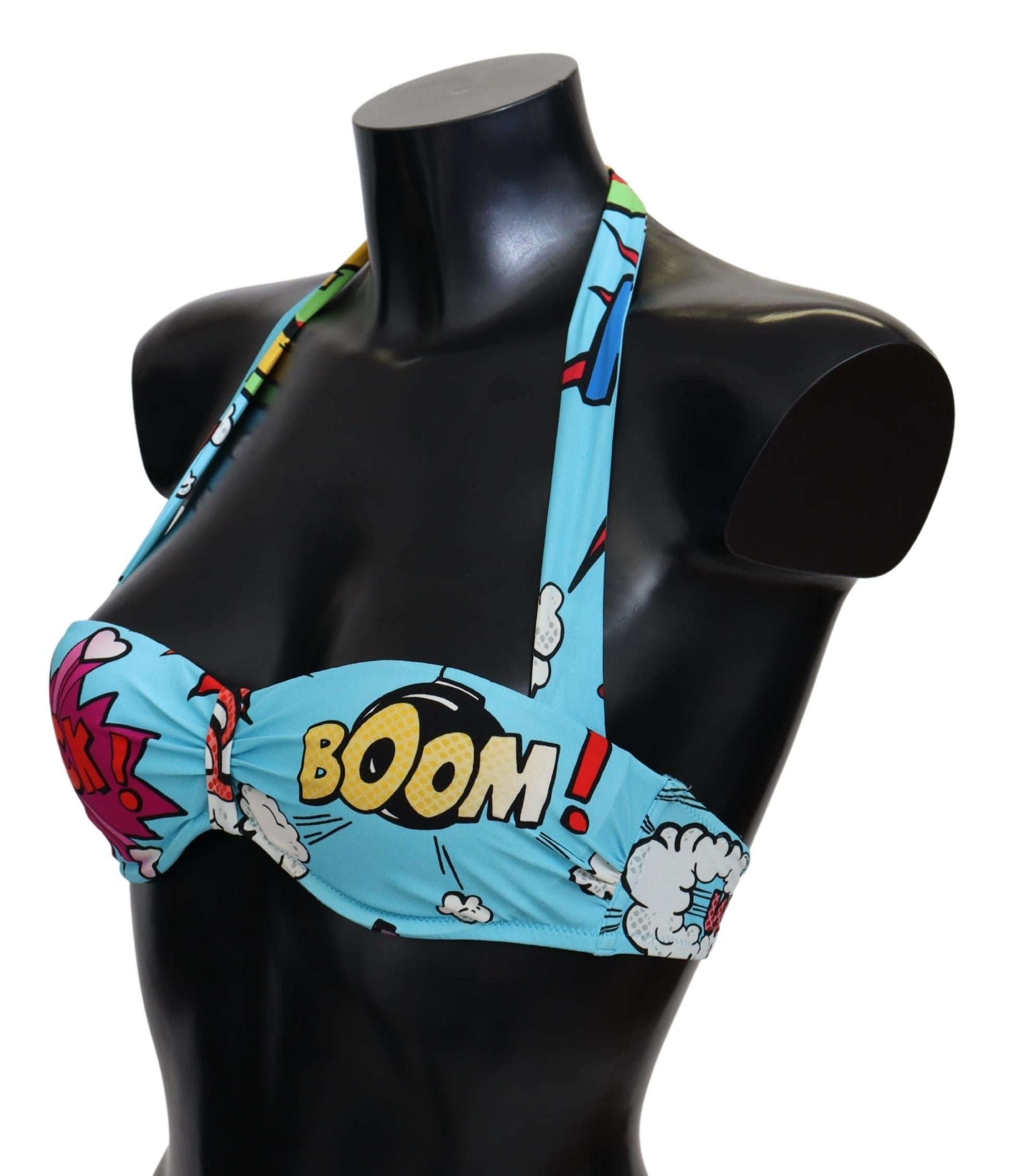 Embrace summer vibes with this stunning Dolce & Gabbana bikini top, featuring a playful cartoon print. Crafted from a comfortable blend of nylon and elastane, this light blue swimwear piece combines luxury with a touch of whimsy. Perfect for making a statement by the pool or on the beach, it comes brand new with tags, ensuring 100% authenticity and brand excellence.