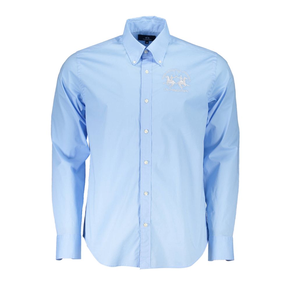 Step out in style with this refined La Martina Regular Fit Shirt, tailored to enhance your sophisticated wardrobe. Its long sleeves, button-down collar, and single-button cuffs offer a classic touch, while the delicate embroidery and iconic logo on the chest exude an air of exclusivity. Crafted from a premium blend of 97% cotton and 3% elastane, this shirt promises both comfort and a perfect fit.