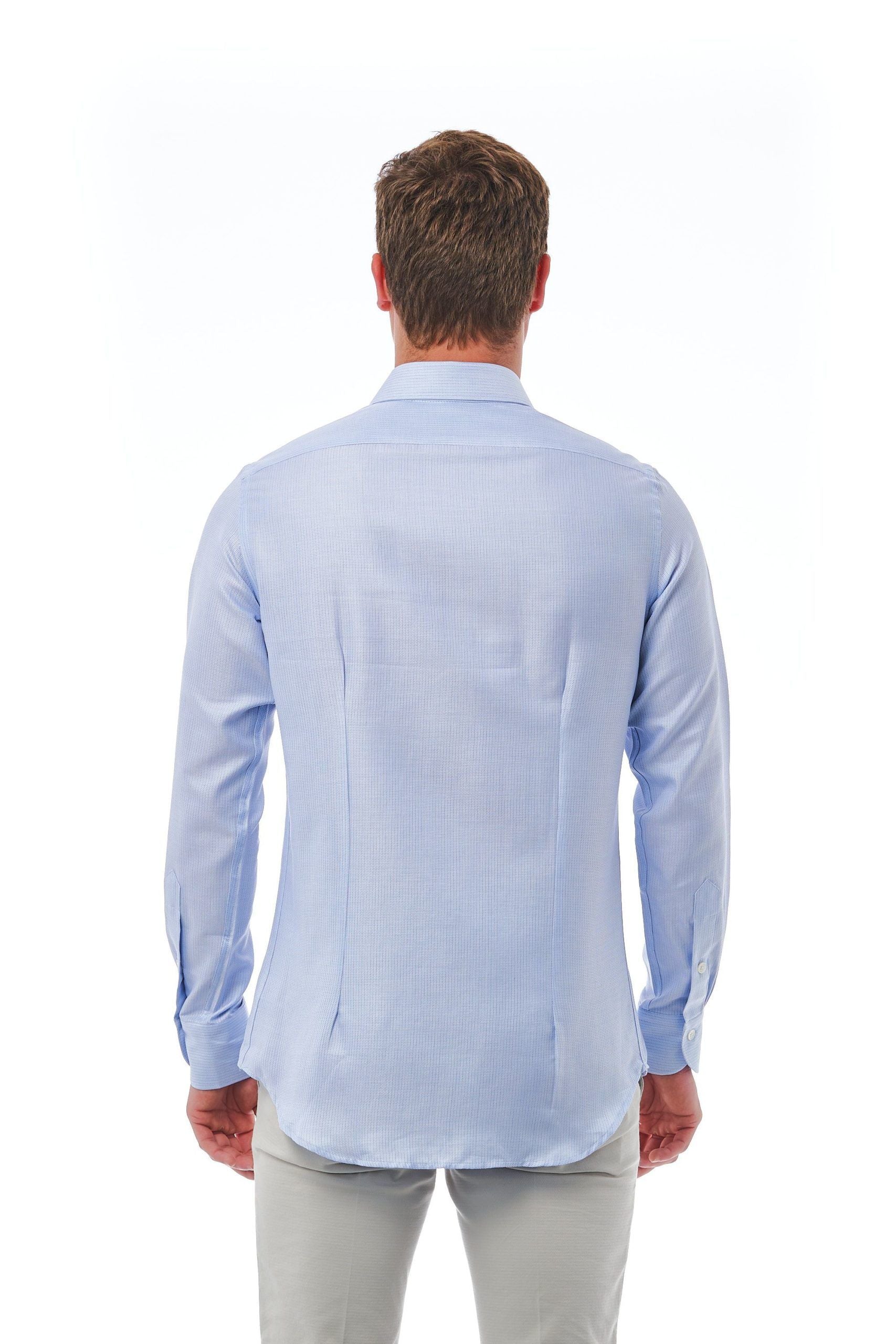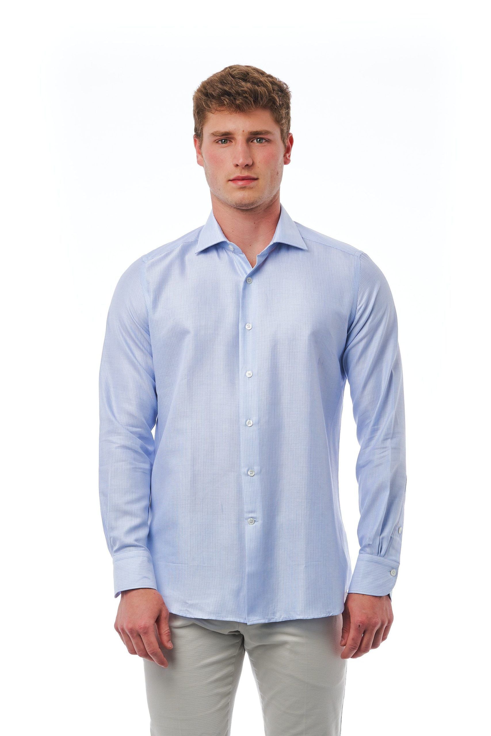 Exude sophistication with Bagutta’s Slim Fit French Collar Shirt, a testament to Italian craftsmanship. Perfect for making a polished impression, this light-blue shirt offers a sleek silhouette that complements any gentleman’s wardrobe.