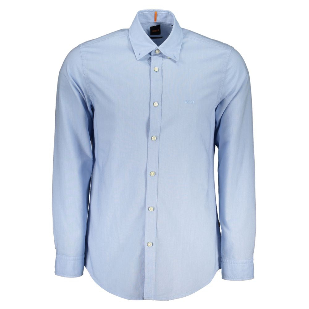 Experience timeless elegance with this impeccably tailored light blue shirt from Hugo Boss. Styled with long sleeves, a relaxed regular fit, and a sharp button-down collar, it’s perfect for both business and casual occasions. The refined 1-button cuffs and the discreet logo detailing add a touch of sophistication to your ensemble.