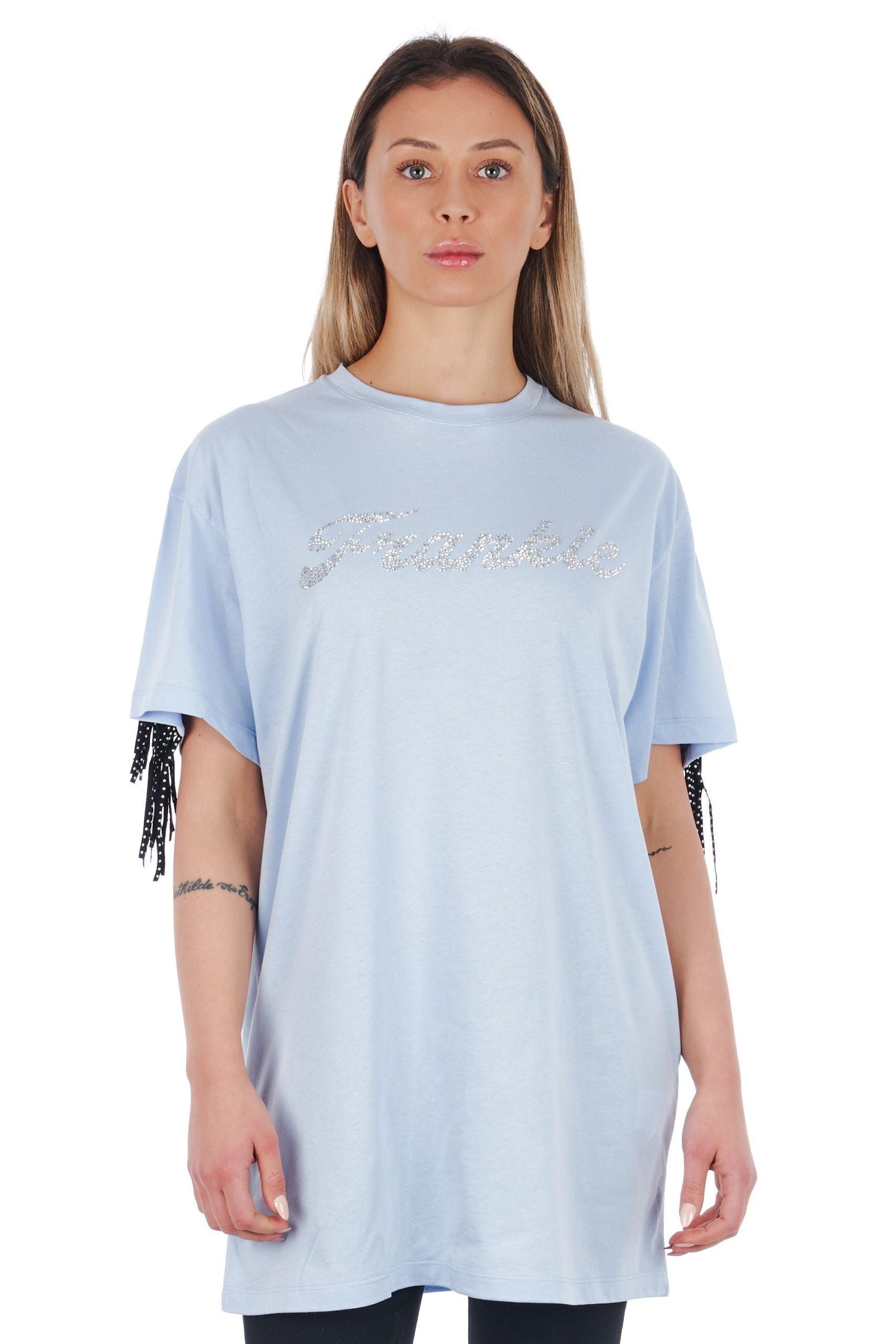 Step up your casual wear with this exquisite oversized T-shirt that perfectly embodies contemporary fashion with a twist. This piece from Frankie Morello boasts a bold front logo for instant brand recognition. The real showstopper is the studded fringe on the back that adds a touch of edgy glamour to your outfit, ensuring you stand out in any crowd.